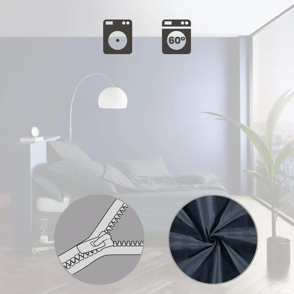 Постельное белье Mako Damask от Erwin Müller из Фюрта. Блочно-полосатая структура ткани элегантно мерцает, подчеркивая ее изысканный характер. Насладитесь прекрасным микроклиматом в этой гладкой, бархатисто-мягкой, тонкой ткани. Она легкая, терморегулирующая и обладает стойким блеском. Изготовлено из тончайшей гребеной и мерсеризованной пряжи. Легко надевается благодаря практичной молнии.