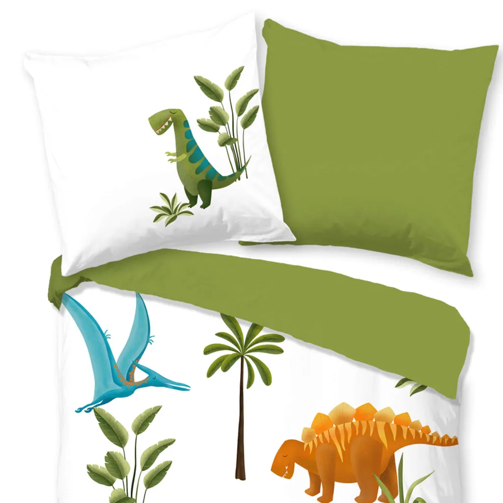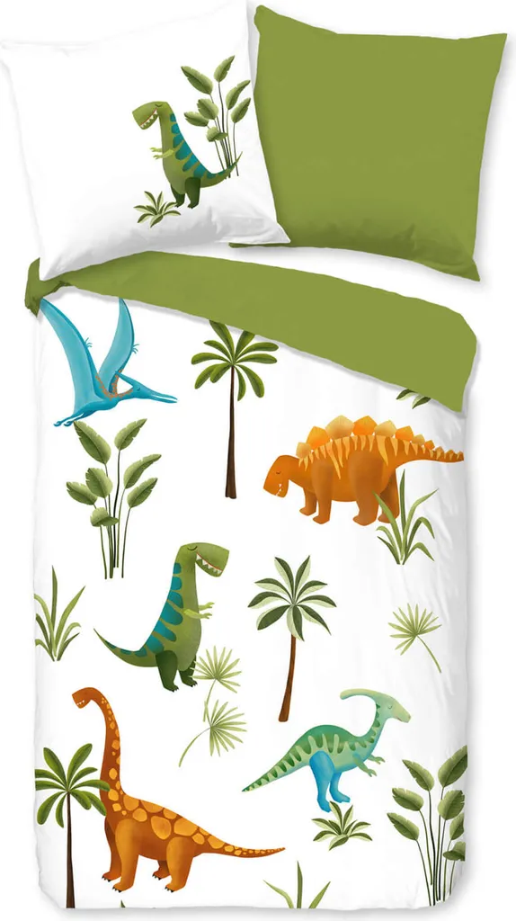 Этот фантастический комплект постельного белья Trendy, изготовленный из 100% хлопка, является абсолютной необходимостью для всех поклонников динозавров. Различные кусты и пальмы окружают динозавров, завершая авантюрный дизайн комплекта постельного белья. Изнаночная сторона двустороннего постельного белья однотонная, ярко-зеленая. Чтобы сохранить качество цвета, яркие цветные изделия необходимо стирать при температуре, указанной на этикетке по уходу в течение первых нескольких стирок. Декоративные элементы, показанные на изображении, не включены. Различные настройки экрана могут привести к небольшим отклонениям в цвете по сравнению с оригинальным изделием. Двухкомпонентное, гладкое, мягкое и приятное на ощупь детское постельное белье из 100% хлопка с мотивами динозавров и гибким двусторонним рисунком. Приятный для кожи комплект постельного белья с различными видами динозавров в окружении пальм и кустарников. Гибкая изнаночная сторона, однотонная зеленая изнаночная сторона, дышащая, регулирующая влажность, термобалансирующая, воздухопроницаемая, подходит для любого сезона. Стандарт 100, номер теста. 4214 Shirley, можно стирать в стиральной машине при 40 градусах, можно сушить в сушильной машине, легко ухаживать, с практичной застежкой-молнией. В комплекте: 1 пододеяльник (135 x 200 см) и 1 наволочка (80 x 80 см).