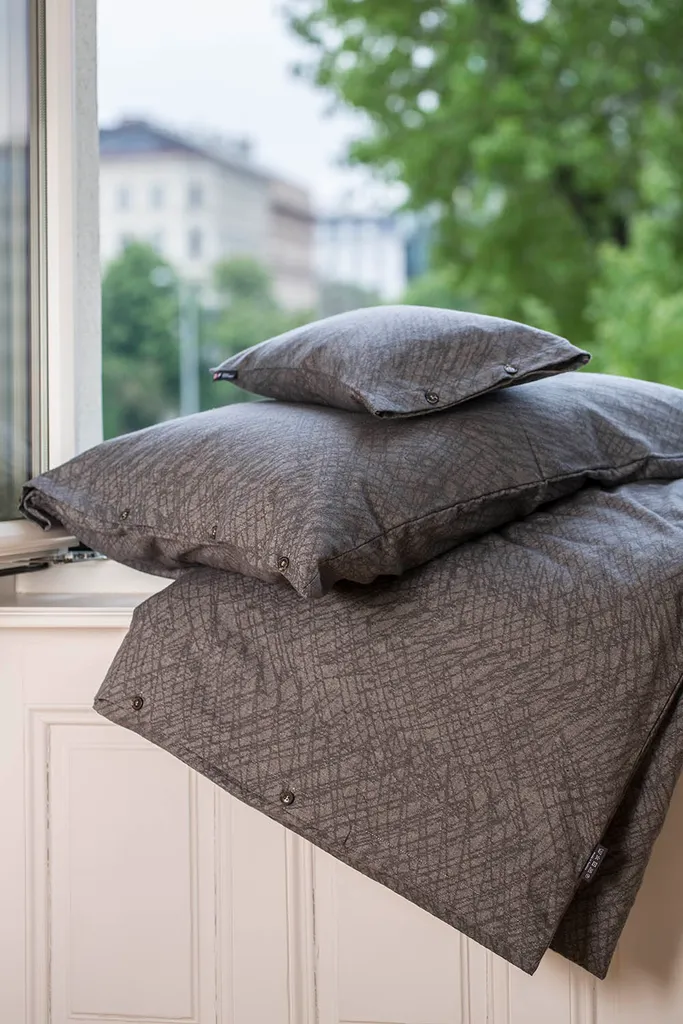 Размер постельного белья: 140 x 200 см, наволочки: 80 x 80 см. В комплект также входит сумка для хранения, которая не только подходит к пододеяльнику, но и позволяет хранить наволочку и простыню с резинкой в порядке и легкодоступных местах. Весь комплект изготовлен из переработанного хлопка. Для этого обрезки швейной промышленности сначала расщепляются на волокна, а затем снова скручиваются в пряжу. Хлопковое постельное белье также особенно легко ухаживать: его можно стирать в стиральной машине в деликатном режиме при температуре до 40 °C и гладить в теплом режиме. Обратите внимание, что фланелевый пододеяльник не подходит для сушки в стиральной машине.