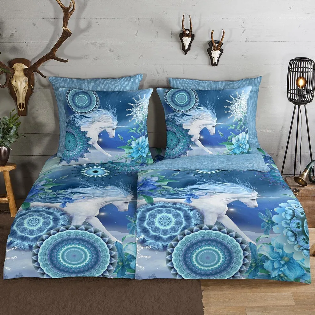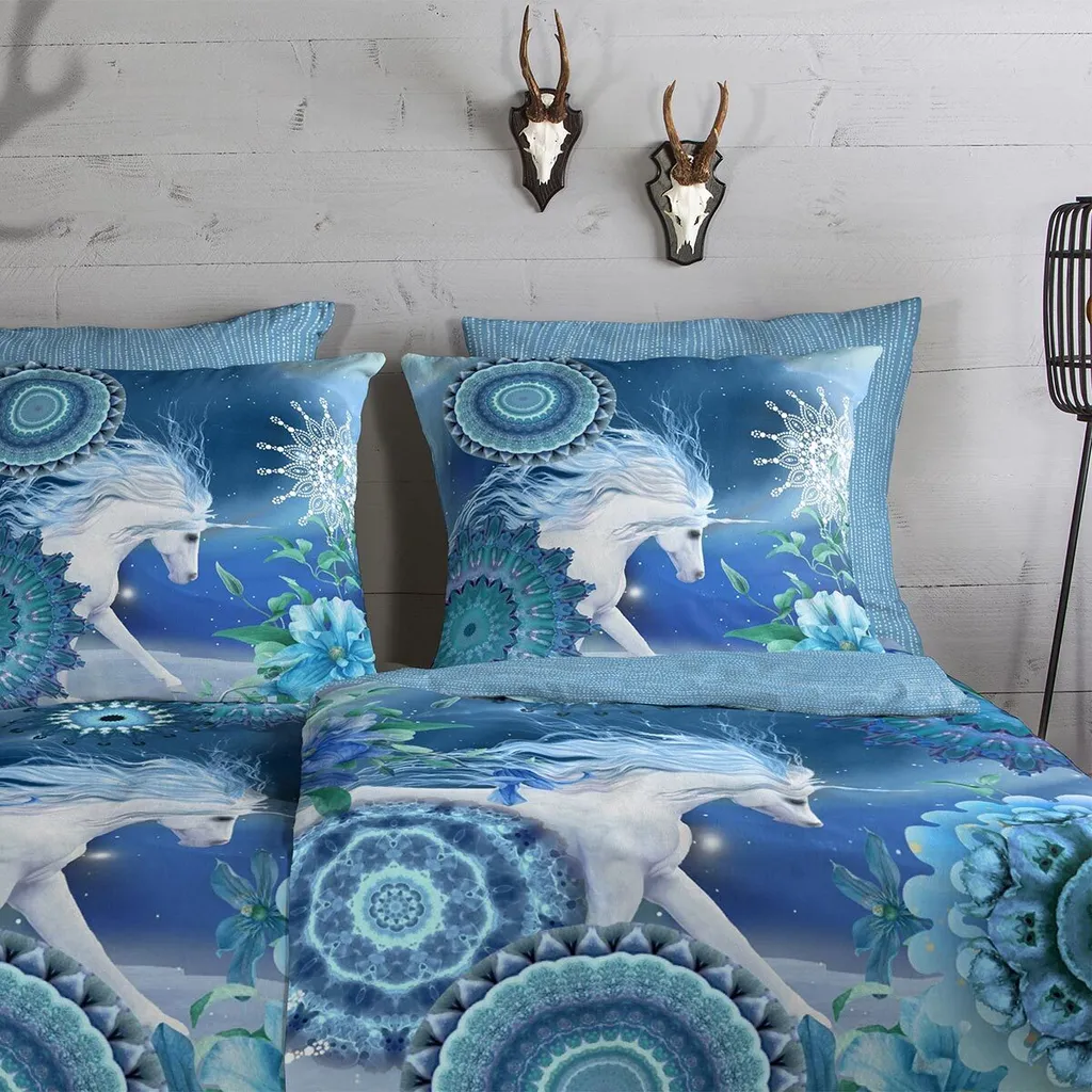 Фланелевый пододеяльник "Lumi" от HIP. Этот эффектный пододеяльник с мандалами и единорогом синего цвета изготовлен из 100% хлопка/фланели с начесом. Пододеяльники HIP яркие и уникальные! Изнаночная сторона каждого пододеяльника HIP всегда украшена забавным принтом в тон. Пододеяльник Hip украсит любую спальню!