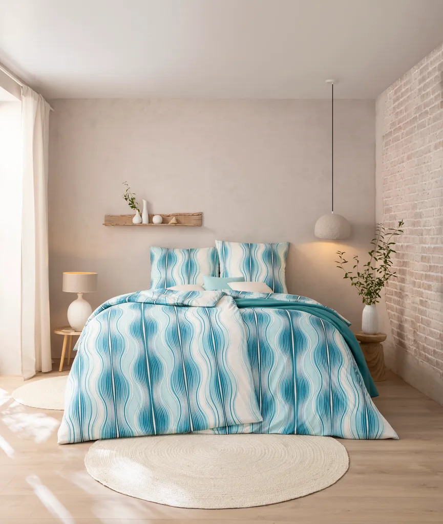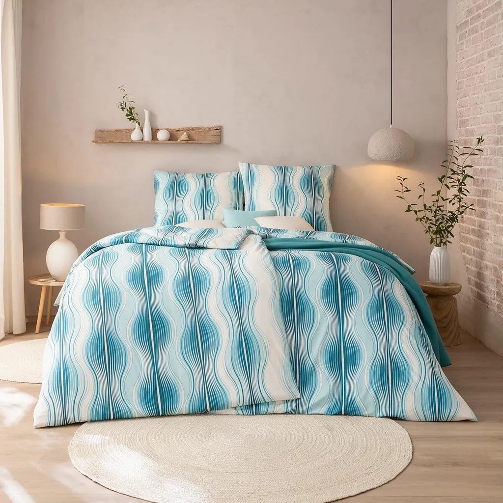 Постельное белье Estella Mako из трикотажа интерлок Atelier Marisol 135x200 + 1 подушка 80 x 80 Graphic cyan