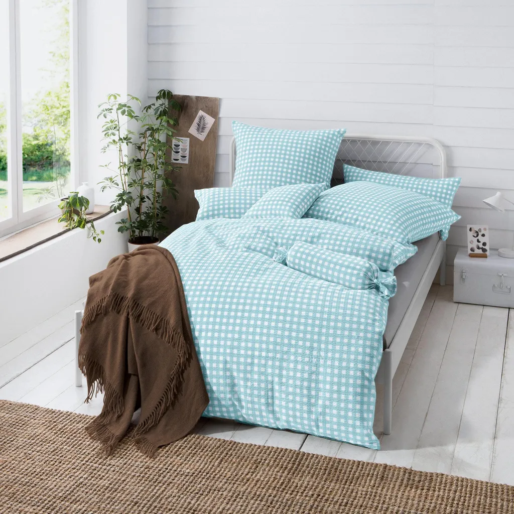 Постельное белье Erwin Müller Seersucker Kronach. Красивая клетка, классический узор, создает уютную атмосферу в вашей спальне. Она подчеркивает деревенский шарм, но также становится особенно привлекательной деталью в современных интерьерах. Особенно летом вы оцените ее приятную легкость, приятные к телу свойства, а также терморегуляцию благодаря характерному жатому эффекту. За ним легко ухаживать, он быстро сохнет, не мнется, а благодаря молнии его можно быстро положить обратно на кровать.