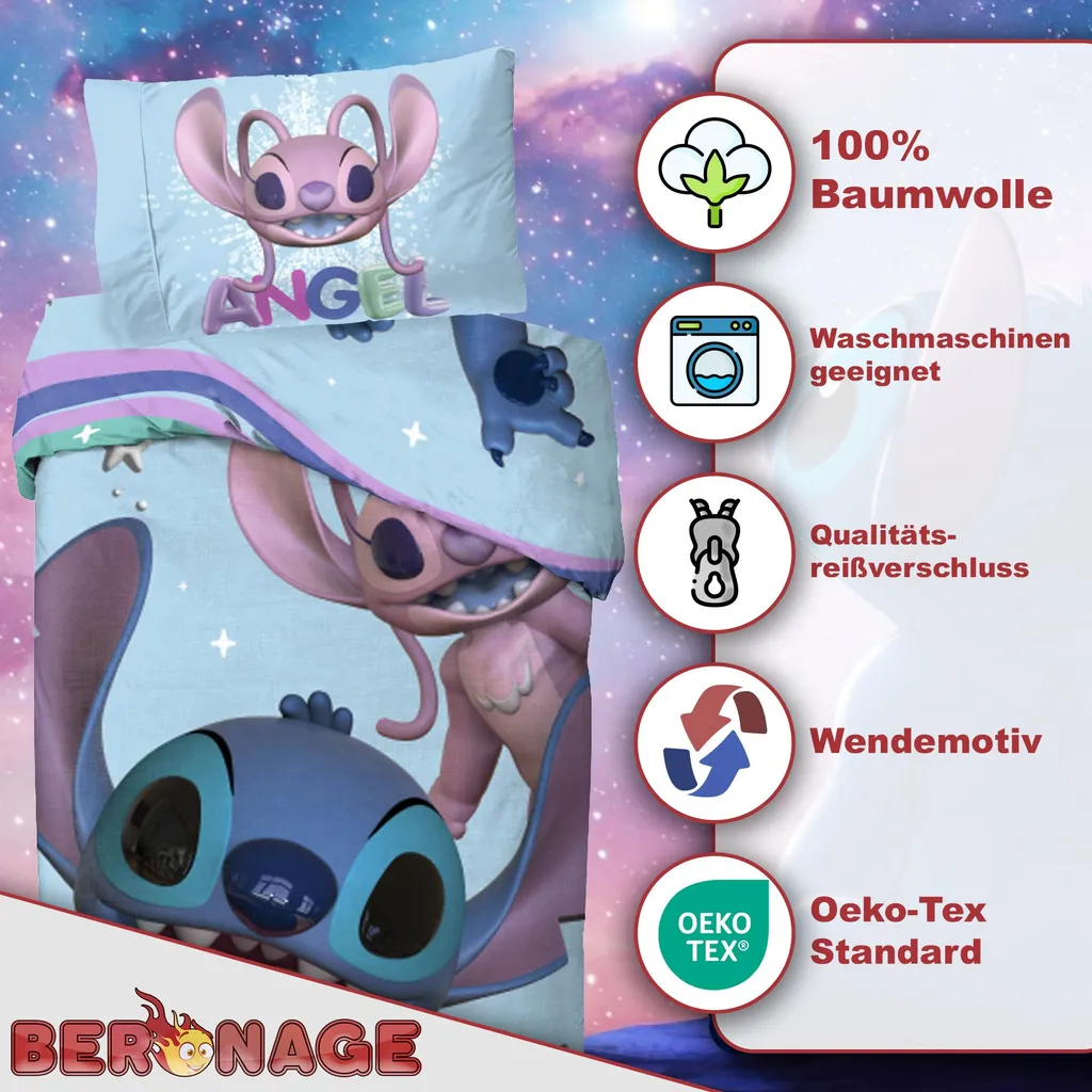МАТЕРИАЛ - Этот пододеяльник Lilo & Stitch приятен для кожи и дышащий, изготовлен из 100% хлопка с гладкой перкалем/ренфорсом и создает здоровую и комфортную среду для сна круглый год. Это постельное белье, конечно же, 22.HUS.41238 HOHENSTEIN HTTI.