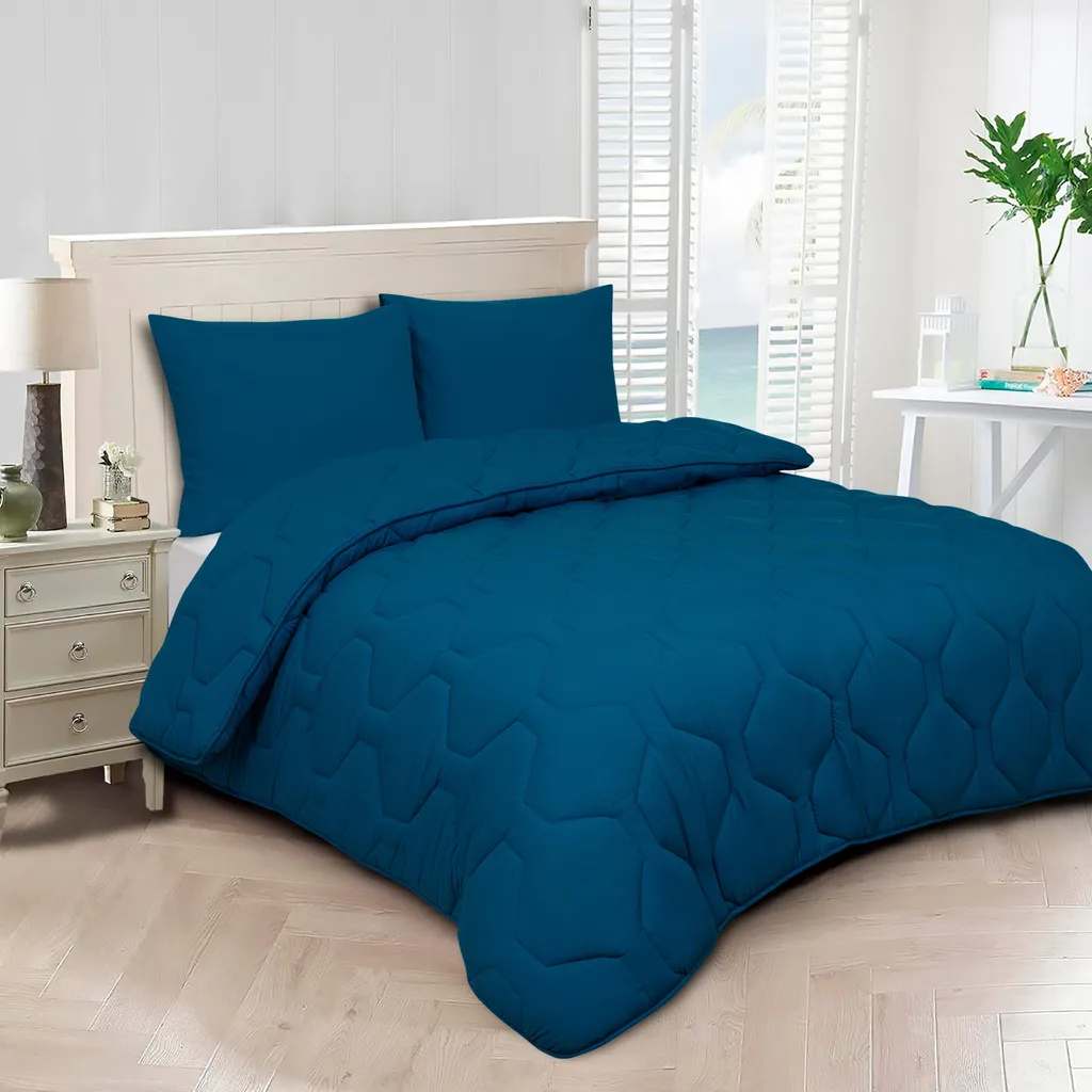 Одеяло DoubleDry 2-в-1 легко в использовании и отличается превосходной вентиляцией и регуляцией влажности, впитывая не менее чем на 40 процентов больше влаги, чем хлопок! Оно антибактериальное, не допускает размножение бактерий и грибков и оставляет ощущение сырости в прошлом. Мягкий полипропиленовый чехол невероятно мягкий на ощупь, отводя пот, прежде чем он проникнет в наполнитель. Швы аккуратно отделаны. Одеяло DoubleDry 2-в-1 - это удивительно мягкое и дышащее одеяло с весом наполнителя около 330 граммов на квадратный метр. Оно поставляется с мягким и удобным чехлом. Это одеяло имеет класс теплоты 2, что обеспечивает охлаждающий эффект и делает его идеальным для теплых ночей. Наполнитель одеяла надежно прошит, чтобы предотвратить смещение. Одеяло гипоаллергенно, не имеет запаха и может стираться при температуре 40 градусов. Оно оптимально впитывает влагу, делая его очень комфортным. Это одеяло обеспечит вам мгновенный спокойный сон! Характеристики изделия: Одеяло 2-в-1. Обратите внимание! Наволочки продаются отдельно и не входят в комплект поставки. [Чехол прошит для предотвращения скольжения] [Чехол из полиперкаля] [Наполнитель - холлофайбер] [Вес наполнителя 330 грамм] [Класс жаростойкости 2] [Подходит для любого сезона] [Стирать при температуре до 40 градусов] [Можно стирать в стиральной машине при минимальной загрузке 5 кг] [Сушить в стиральной машине при низкой температуре] [Правила поведения]
