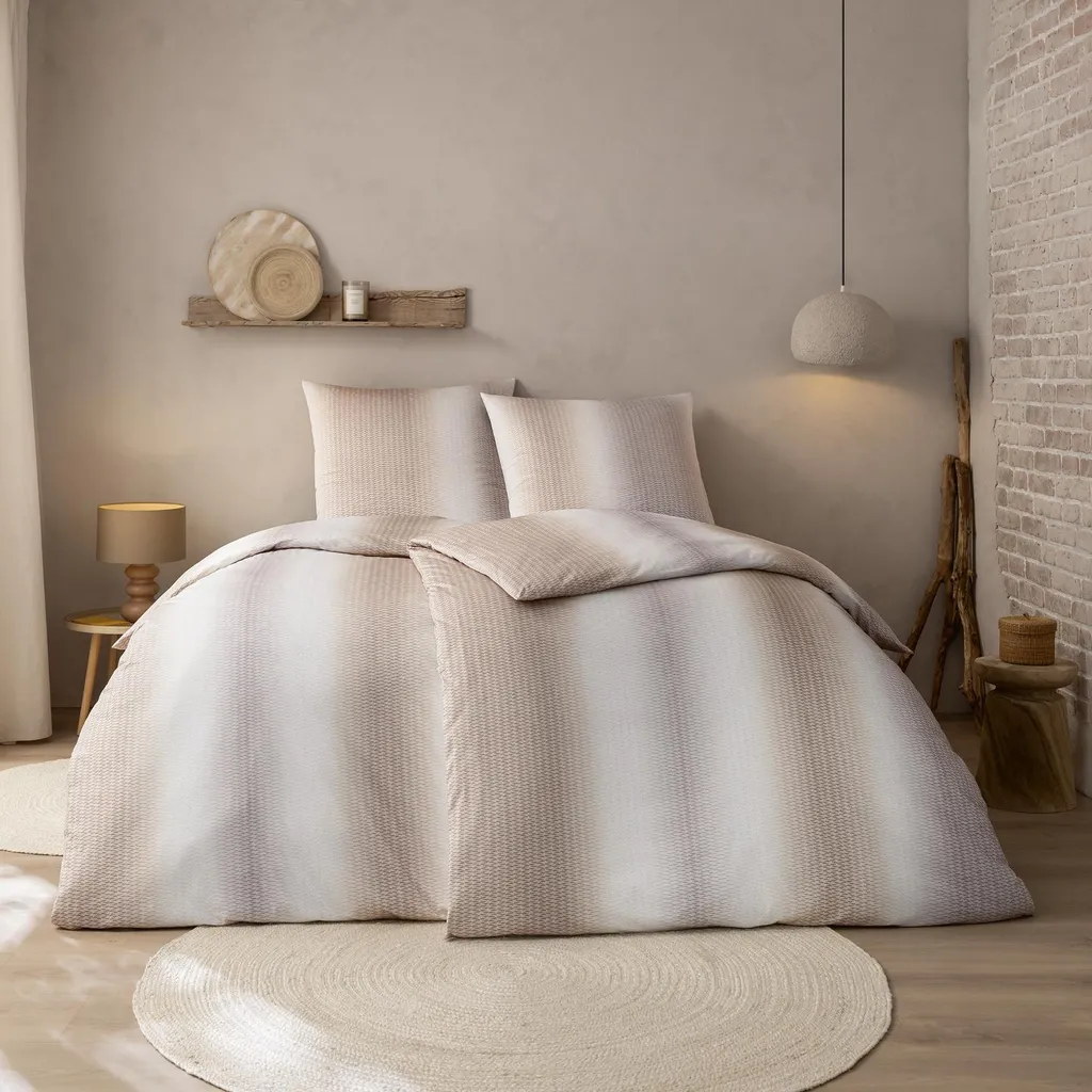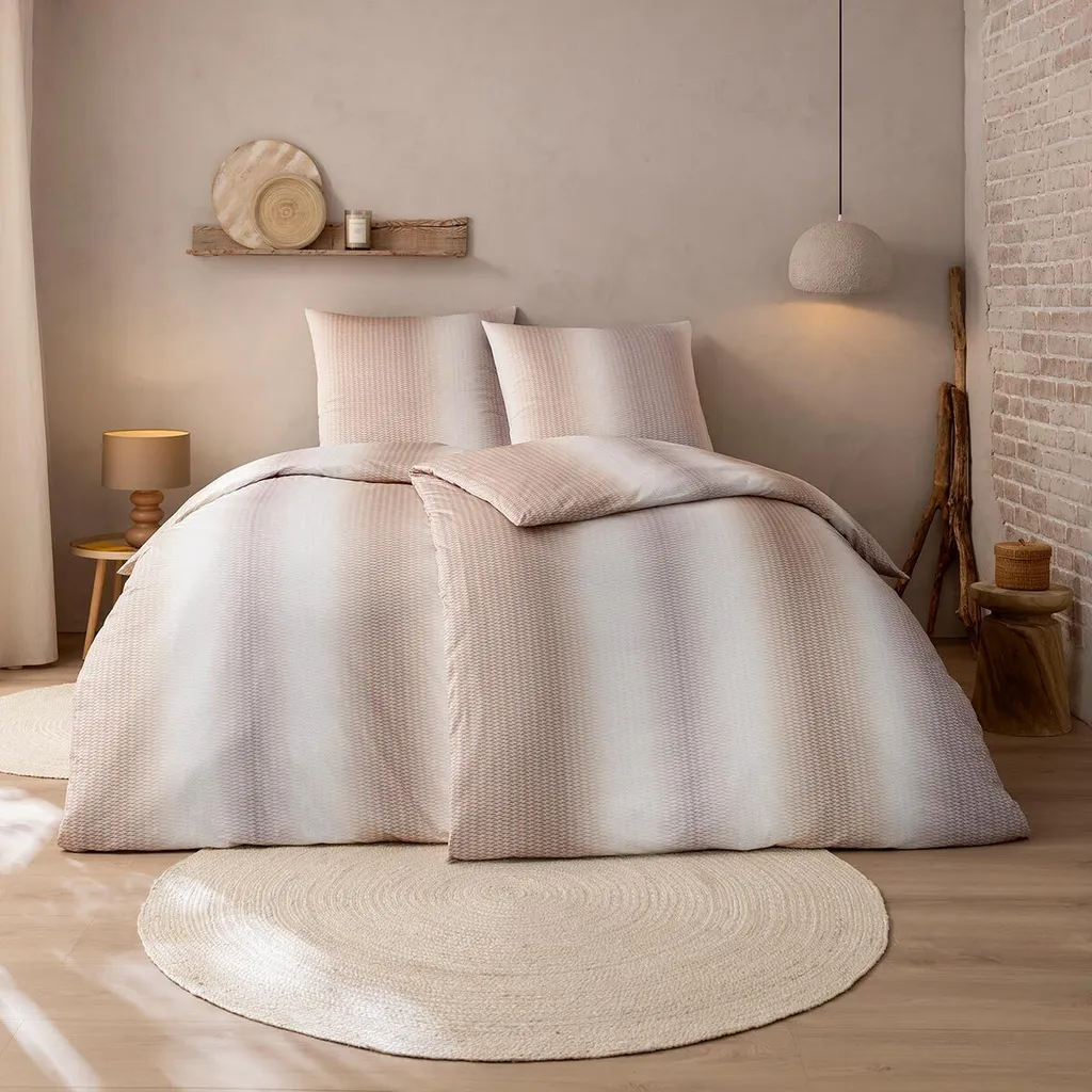 Постельное белье из линейки ATELIER отличается изысканным дизайном и гармоничным взаимодействием цветов. Изготовленные из немнущегося трикотажа Mako interlock из чистого хлопка, эти комплекты постельного белья гарантируют вам шелковисто-мягкий сон.