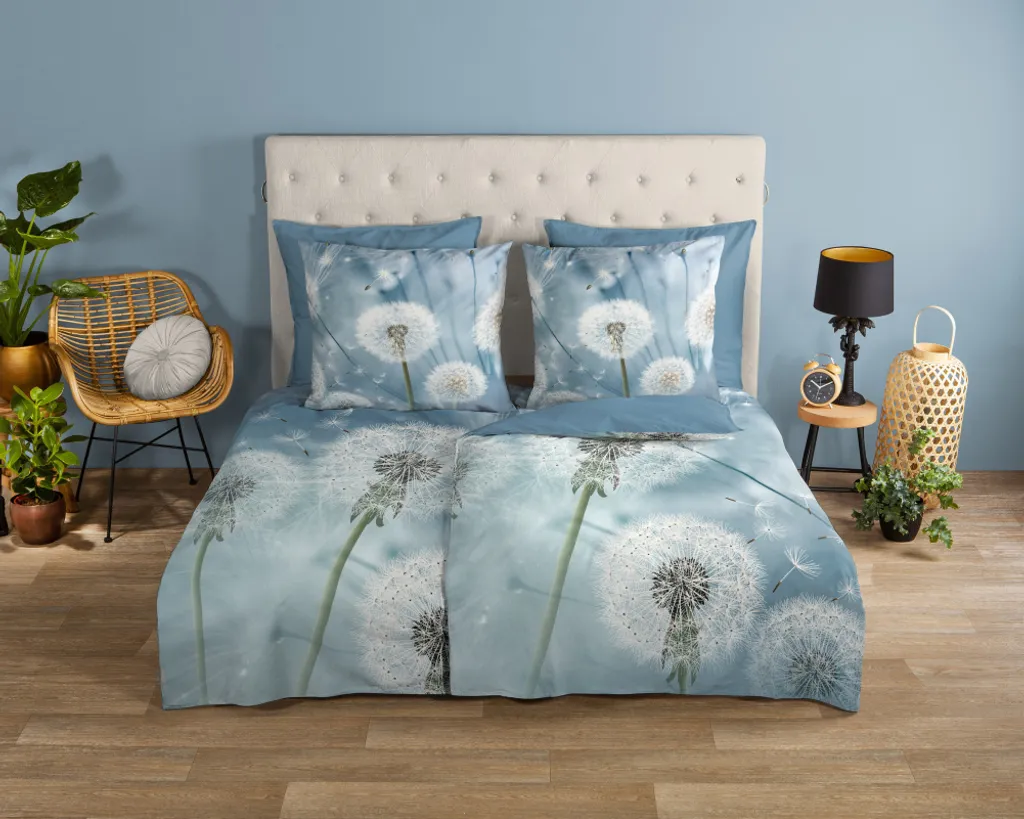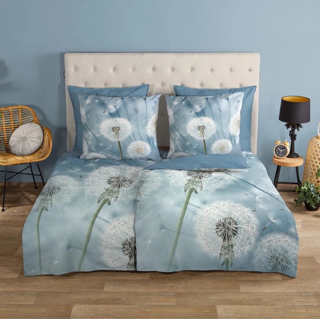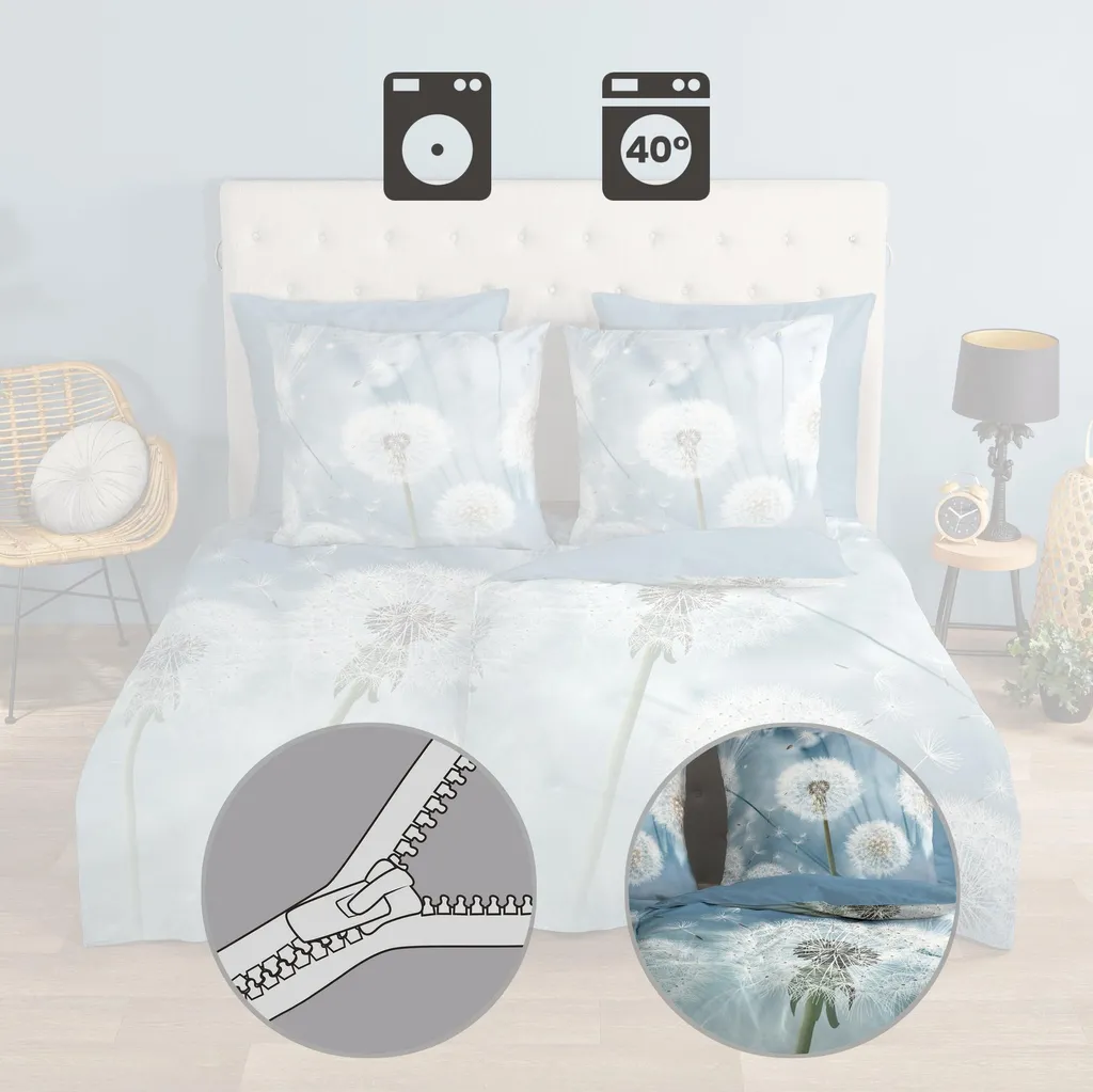 Пододеяльник "Wishfull" от Good Morning с цветами, в цвете "Multi", изготовлен из 100% хлопка. Этот материал дышащий, влагоотводящий, мягкий и гладкий на ощупь. Этот красивый пододеяльник украсит любую спальню и подойдет для всех Времена года. Хлопковый пододеяльник прохладен летом и согревает зимой. Комплект состоит из пододеяльника размером 155x220 см и наволочки размером 80x80 см, включая молнию YKK. Стирать при температуре не более 40°C и сушить в стиральной машине. Пусть комплект постельного белья Good Morning Wishfull перенесет вас в мир легкости! Сказочный дизайн с нежными одуванчиками и плавно плавающими семенами на успокаивающем синем фоне придаст вашей спальне гармоничную и расслабляющую атмосферу. Изящные детали цветов одуванчика создают воздушное, почти волшебное настроение, которое приглашает вас помечтать. Изготовленное из 100% высококачественного хлопка, это постельное белье особенно мягкое, дышащее и приятное для кожи. Практичная застежка-молния обеспечивает удобство в использовании, а высокое качество ткани гарантирует комфортный сон.