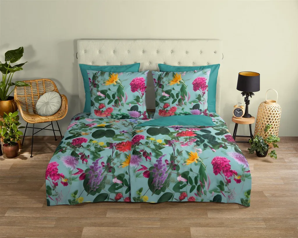 Пододеяльник Imma от Good Morning с цветочным принтом в цвете Aqua изготовлен из 100% хлопка. Эта ткань дышащая, влагоотводящая, мягкая и гладкая на ощупь. Этот красивый пододеяльник украсит любую спальню и подойдет для любого сезона. Хлопковый пододеяльник прохладный летом и теплый зимой.