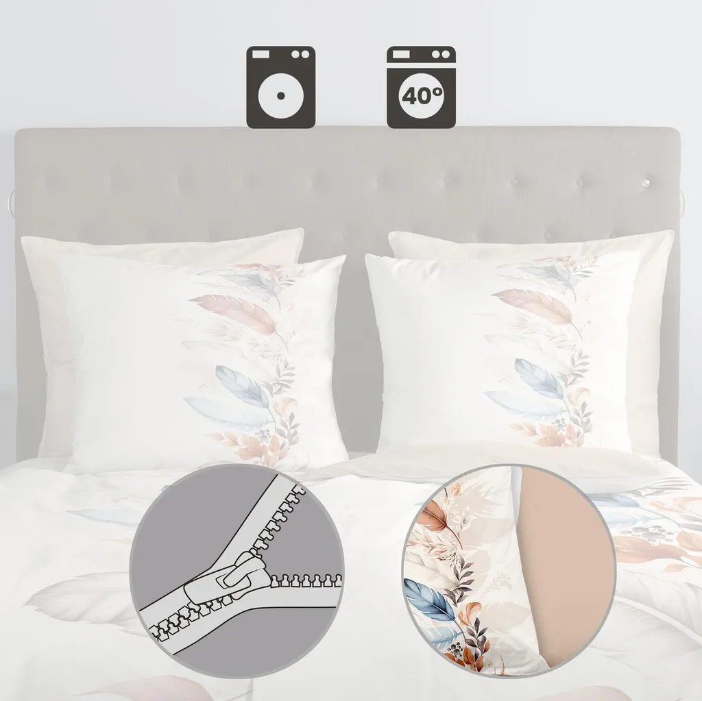 Пододеяльник "Mirra" от Good Morning с перьями, в цвете "белый", изготовлен из 100% хлопка. Этот материал дышащий, влагоотводящий, мягкий и гладкий на ощупь. Этот красивый пододеяльник украсит любую спальню и подойдет для всех В зависимости от времени года. Хлопковый пододеяльник прохладный летом и теплый зимой. Комплект состоит из пододеяльника (135 x 200 см) и наволочки (80 x 80 см) на молнии YKK. Стирать при температуре не выше 40°C и сушить в стиральной машине. Постельное белье марки Good Morning из 100% хлопка (перкаль). Можно стирать в стиральной машине при температуре до 40°C. Наволочка и пододеяльник застегиваются на молнии. Изнаночная сторона постельного белья выполнена в тон цвета.