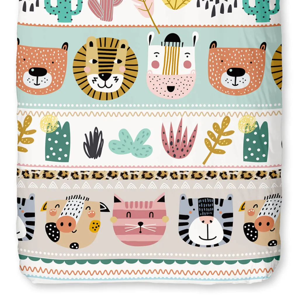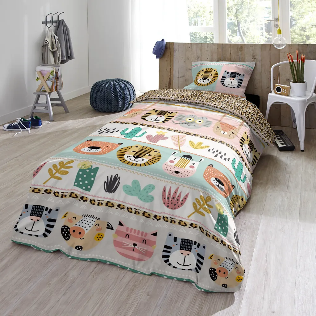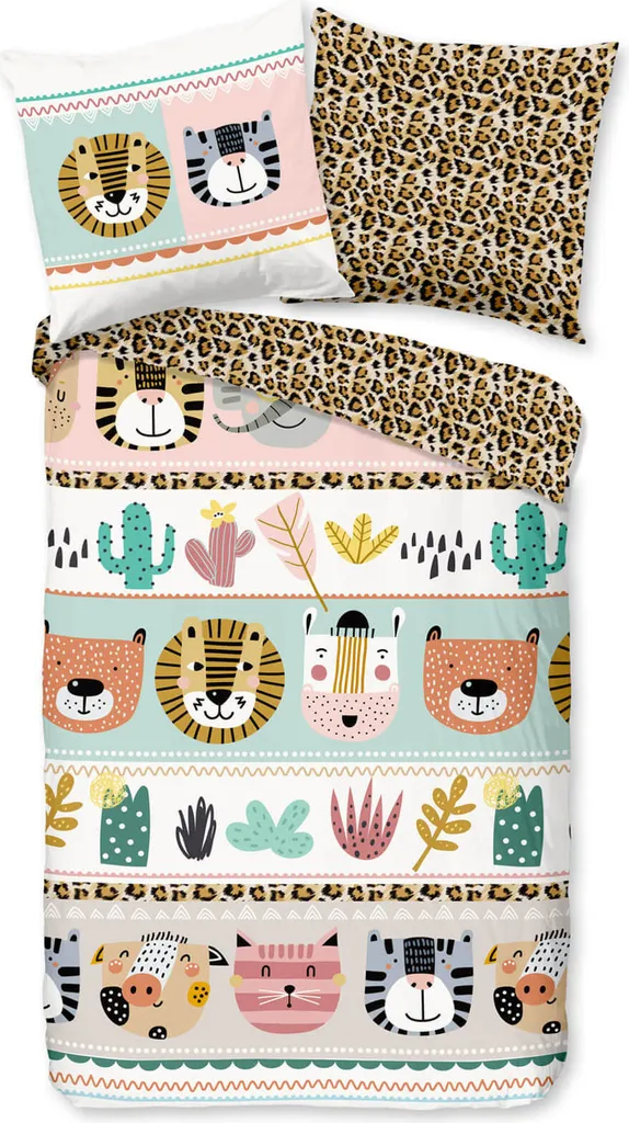Создайте радостную атмосферу в комнате вашего ребенка с комплектом постельного белья Trendy Bedding Friends. Милые мордочки львов, кошек и других животных, а также кактусы и перья украшают лицевую сторону этого красочного комплекта постельного белья, вдохновляя ваших малышей мечтать о диких приключениях. Изнаночная сторона украшена леопардовым принтом, который идеально дополняет анималистичный дизайн. Устройтесь поудобнее на легкой, гладкой и приятной поверхности из 100% хлопка и насладитесь максимальным комфортом сна для вас и ваших малышей. Чтобы сохранить качество цвета, яркие изделия следует стирать при температуре, указанной на этикетке, в течение первых нескольких стирок, но не ниже. Декоративные элементы, показанные на рисунке, в комплект не входят. Различные настройки экрана могут привести к небольшим отклонениям в цвете по сравнению с оригинальным изделием. Двухкомпонентное, гладкое, мягкое и приятное двустороннее постельное белье из 100% хлопка с животными и растительными мотивами в разных сериях изображений. Детский комплект постельного белья с яркими мордочками животных, эластичный, двусторонний, с леопардовым принтом на изнанке. Дышащий, влагорегулирующий, терморегулирующий, воздухопроницаемый, прочный, с практичной застежкой-молнией./li>Комплект поставки: 1 пододеяльник (135 x 200 см) и 1 наволочка (80 x 80 см).