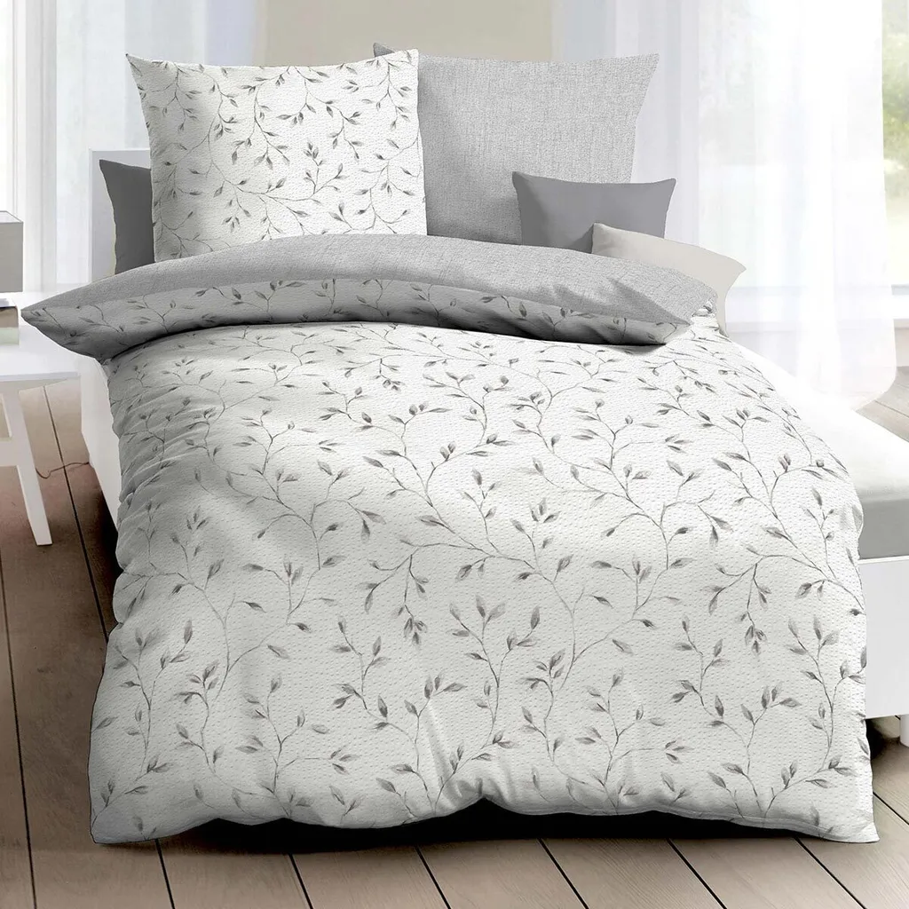 Постельное белье Seersucker Leaf 135x200 см + 80x80 см серое Kaeppel