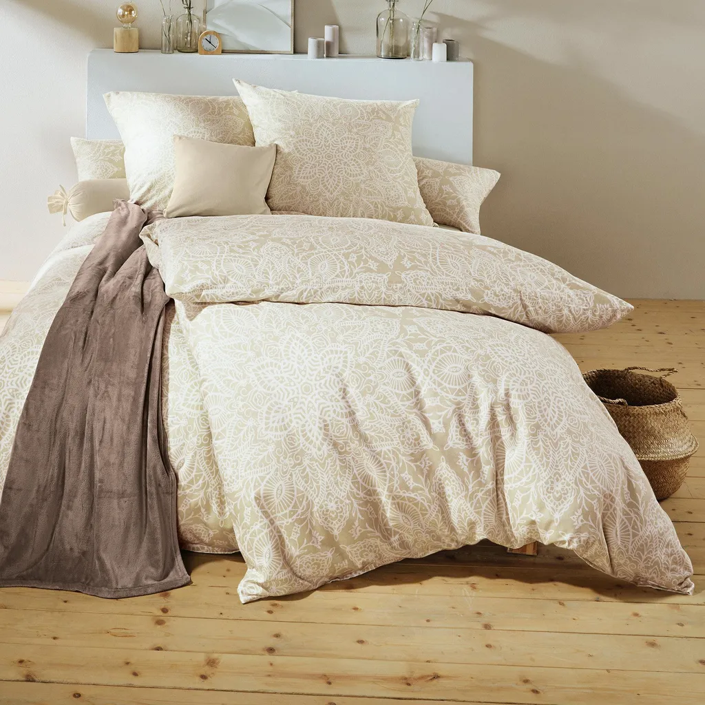 Erwin Müller Изящное фланелевое постельное белье. Изысканные восточные орнаменты создают ощущение элегантности и располагают к спокойному сну. Плотная ткань с бережным расчесыванием и мягким ворсом обеспечивает высокий уровень уюта. Как только вы ляжете в постель, вы ощутите приятное тепло и чувство защищенности. Это качество не только дышащее и терморегулирующее, но и приятное для кожи и простое в уходе. Быстро и легко надевается благодаря практичной молнии.