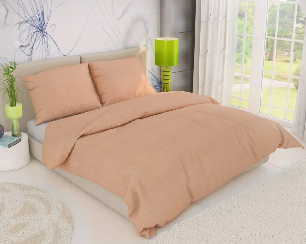Материал: 100% хлопковый креп, полотняное переплетение, набивной. Размеры белья: 140x200 см, 70x90 см. Температура стирки: 60 °C, стирать вывернутым наизнанку, сушить в стиральной машине. Комплектация: 1+1, 1 пододеяльник + 1 наволочка. Цвет белья: лососевый. Стандартный креп: Белье этой коллекции изготовлено из хлопковой ткани полотняного переплетения. Креповое белье имеет большое преимущество в том, что его не нужно гладить, что экономит много времени благодаря креповой отделке. Мы очень тщательно подбираем рисунки постельного белья и координируем цвета, чтобы все цвета были представлены в коллекции. Мы предлагаем постельное белье из хлопкового крепа как с набивным рисунком, так и однотонное. Мы также предлагаем широкий выбор декоративных наволочек, которые идеально дополнят общий вид вашей кровати. Свойства материала: Постельное белье изготовлено из 100% хлопковой ткани. Креп создается путем специальной обработки. Вес ткани (грамм на квадратный метр) составляет 135 г/м². Благодаря использованию хлопковой пряжи креп приятен на ощупь. Застежка крепового постельного белья: Постельное белье обычно застегивается на молнию. Вшитая молния сегодня очень популярна, поскольку облегчает смену постельного белья. Мы используем молнию с кантом, который никоим образом не выступает за пределы постельного белья. Постельное белье застегивается на так называемый замок, при котором молния не проходит по всей ширине постельного белья, а вшивается на 10 см от края, укрепляя углы. Если вас интересует другой тип застежки (кнопки-нитки, отельный замок), пожалуйста, свяжитесь с Kvalitex. Уход за постельным бельем: Перед первым использованием постирайте постельное белье. Размеры постельного белья указаны после распускания, а новое постельное белье изготавливается с небольшим припуском. Усадка хлопчатобумажных тканей - нормальное явление. Пожалуйста, ознакомьтесь с символами по уходу на этикетке изделия. Мы не рекомендуем сушить постельное белье в стиральной машине. Если вы все же хотите использовать сушильную машину, выберите более длительную программу сушки при более низкой температуре. Обязательно стирайте и сушите постельное белье, вывернув его наизнанку. Креповое постельное белье не требует глажки и очень легко ухаживать. Происхождение товара: Постельное белье производится на нашем собственном производстве в Чехии.