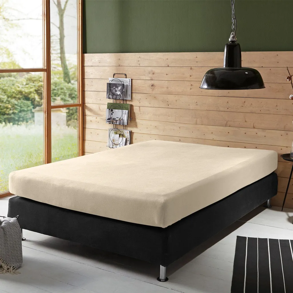 Erwin Müller Простыня на резинке Terry Stretch для пружинных матрасов, Фюссен. Плотная, приятная для кожи, прочная ткань проста в уходе, не мнется, сохраняет форму и эластичность. Прошитые углы и резинка по всему периметру обеспечивают идеальную посадку без складок. Специальное сочетание материалов обеспечивает отличную посадку, а спальная поверхность, соприкасающаяся с телом, полностью изготовлена из чистого хлопка. Пожалуйста, измерьте высоту вашего матраса. Эта простыня на резинке подходит для матрасов высотой до 35 см.