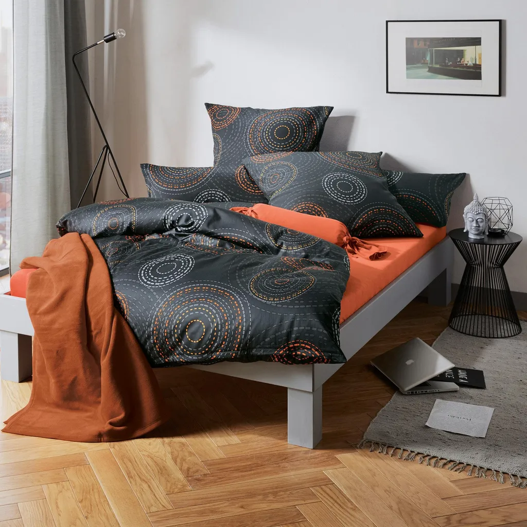 Постельное белье Erwin Müller Mako из сатина. Круги гармоничных цветов идеально впишутся в ваш интерьер и создадут уютную атмосферу. Современный узор оказывает расслабляющее действие и располагает к сну. Он великолепно смотрится на шелковистой ткани из тончайшего расчесываемого мерсеризованного хлопка. Эта чувственная ткань - настоящее удовольствие для вашей кожи. Она очень тонкого плетения, плотной текстуры и воздухопроницаема, обеспечивая приятный сон. Легко надевается благодаря практичной молнии. Характеристики товара: - Французский размер - с кругами - Качество: сатин - с фирменной молнией - Материал: 100% хлопок (BW) - Инструкции по стирке: - Стирать при 60°C - Не отбеливать - Сушить в стиральной машине при низкой температуре - Гладить при средней температуре - Не подвергать химчистке