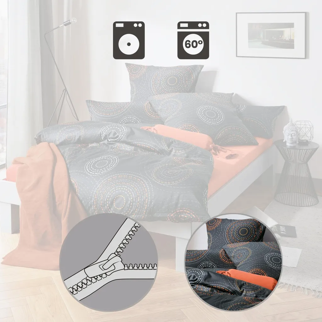 Постельное белье Erwin Müller Mako из сатина. Круги гармоничных цветов идеально впишутся в ваш интерьер и создадут уютную атмосферу. Современный рисунок оказывает расслабляющее действие и располагает к сну. Он великолепно смотрится на шелковистой ткани из тончайшего расчесываемого мерсеризованного хлопка. Эта чувственная ткань - настоящее удовольствие для вашей кожи. Она очень тонкого плетения, плотной текстуры и воздухопроницаема, обеспечивая приятный микроклимат во время сна. Легко надевается благодаря практичной молнии. Характеристики изделия: - с кругами - Качество: сатин - с фирменной молнией - Материал: 100% хлопок (BW) - Инструкции по стирке: - Стирать при 60°C - Не отбеливать - Сушить в стиральной машине при низкой температуре - Гладить при средней температуре - Не подвергать химчистке