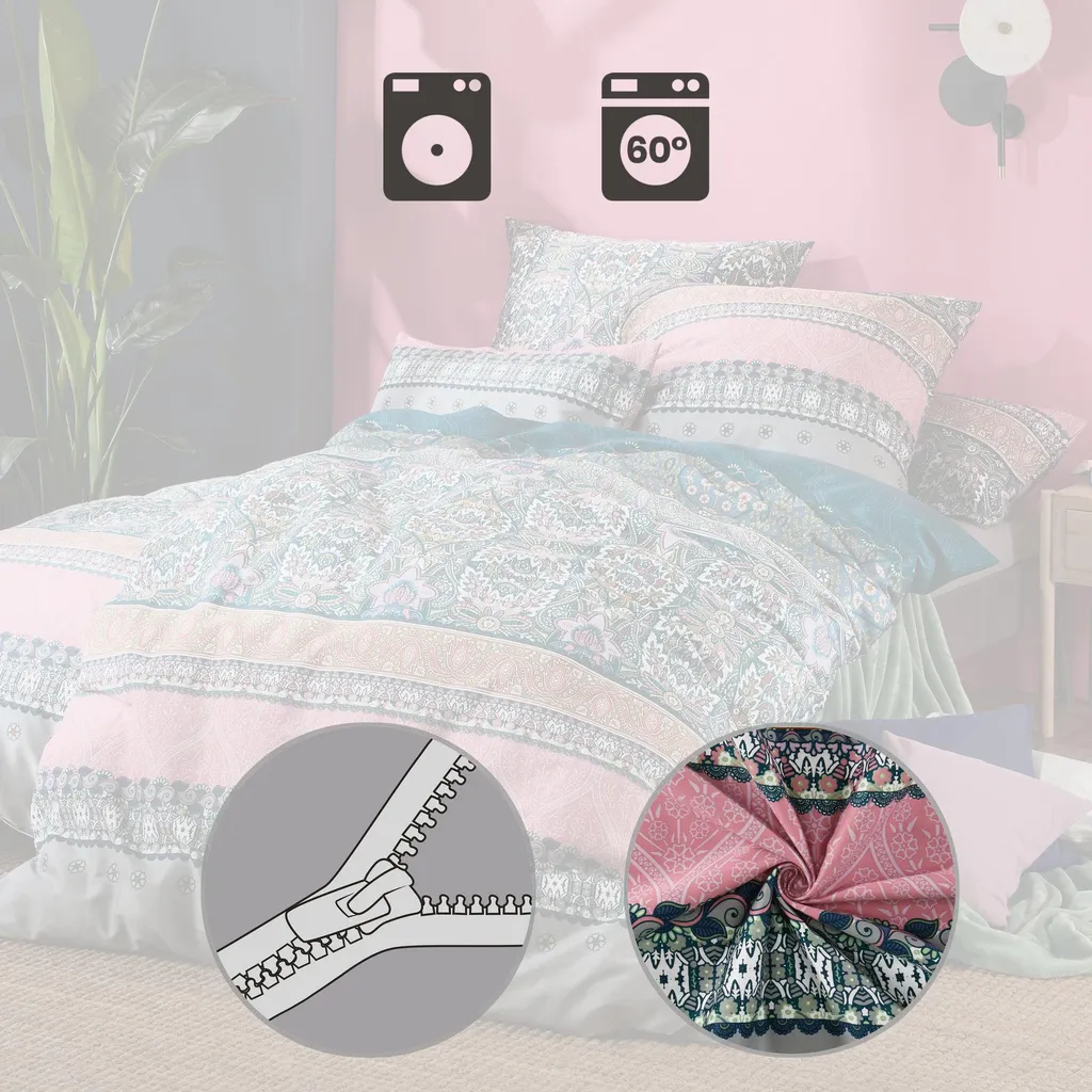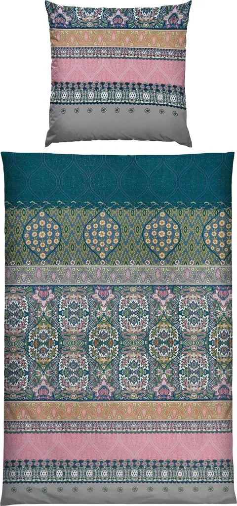 Постельное белье Erwin Müller Mako из сатина. Сочетание великолепных орнаментов, горизонтальных полос и гармоничной игры цветов перенесет вас в спальню, словно в сказку Тысяча и одна ночь. Двусторонняя наволочка. Почувствуйте эту тонкую, бархатистую ткань. Она соблазняет своим элегантным блеском и окутывает вас сказочным сном. Эта ткань терморегулирует, дышащая и мягкая на ощупь.