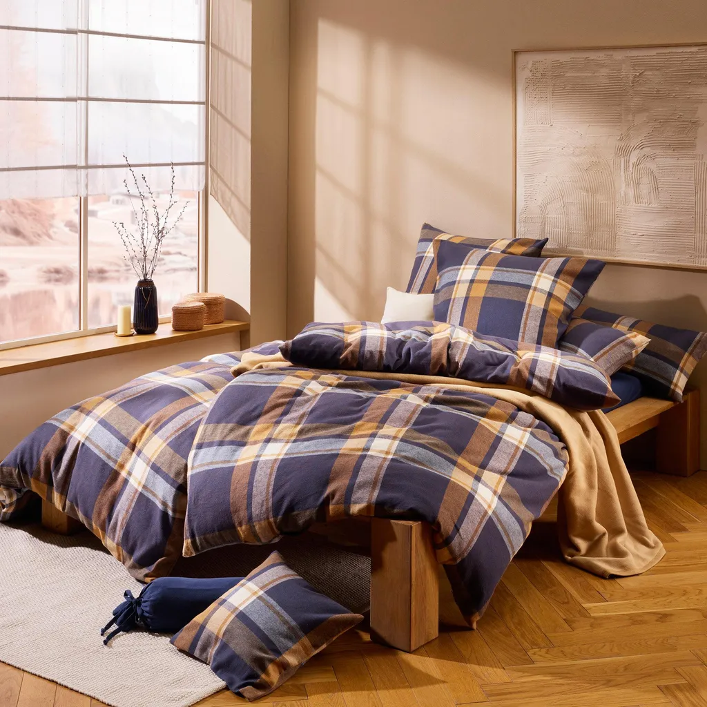 Erwin Müller Фланелевое постельное белье премиум-класса. Яркий клетчатый узор в уютных тонах создаст в вашей спальне атмосферу уюта и комфорта, неподвластную времени. Окрашенные нити обеспечивают длительную интенсивность цвета. Что может быть лучше, чем укутаться в бархатисто-мягкий, приятно теплый ворс прохладными ночами? Его нежная, пушистая поверхность создается путем особого процесса ворсования. Это качество не только терморегулирует, приятно для кожи и дышит, но также долговечно и легко в уходе. Застегивается на пуговицы.