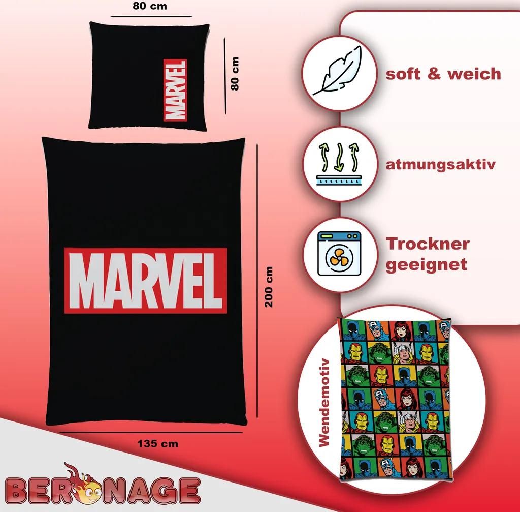 ОБЪЕМ ПОСТАВКИ - Этот комплект постельного белья Marvel Universe состоит из пододеяльника (размер: 135 см x 200 см) и наволочки (размер: 80 x 80 см). Качество изготовления очень высокое и постоянно проверяется.