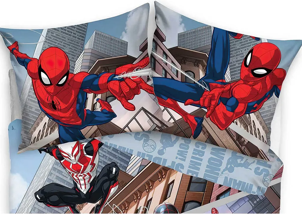 Комплект постельного белья Spider-Man 140x200 Marvel Youth Оригинальное лицензионное постельное белье для детей и подростков - Человек-паук. Принты выполнены с особой тщательностью. Внимание к деталям и яркие цвета рисунка делают постельное белье очень привлекательным, когда оно лежит на кровати. Материал нежный и мягкий на ощупь, обеспечивает исключительный комфорт во время сна и нежен к коже. Машинная стирка при 40°C. Эстетически упакованные комплекты постельного белья станут прекрасным подарком на любой случай. Комплект постельного белья с персонажами Человека-паука. Комплект состоит из двустороннего пододеяльника размером 140 x 200 см и наволочки размером 70 x 90 см. Дополнительным преимуществом является эстетически приятная упаковка с петлей для подвешивания - идеальная идея для практичного подарка. Детское постельное белье, красочное, прочное и безопасное, изготовленное из хлопковой ткани, бережно окутает вашего ребенка во время сна. Застежка-молния позволяет легко сменить его. В комплект входят: - Двусторонний пододеяльник 140 x 200 см - Наволочка 70 x 90 см. Постельное белье Spiderman Swing размером пододеяльника 140 x 200 см и наволочки 70 x 90 см идеально подойдет юным поклонникам Человека-паука. Этот комплект сочетает в себе привлекательный дизайн и практичность, обеспечивая комфортный сон. Описание товара: Постельное белье Spiderman Swing состоит из пододеяльника (140 x 200 см) и наволочки (70 x 90 см). Изготовлено из 100% хлопка, обеспечивает приятный сон. Постельное белье удобно застегивается на молнию и можно стирать в стиральной машине при температуре 40 °C. Подходит как для мальчиков, так и для девочек, и идеально подходит для детской комнаты.