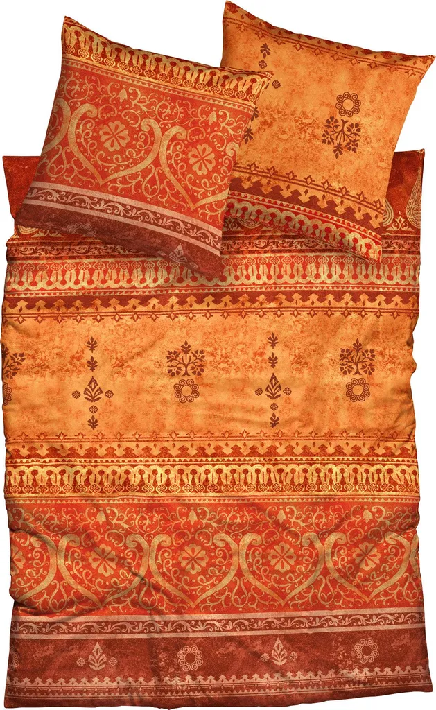 Создайте романтическую и уютную атмосферу в своей спальне с постельным бельем Indi от Casatex. Дизайн, вдохновленный индийским стилем, выполнен в теплых оттенках оранжевого, красного и желтого, создавая гармоничный узор. Уютно устройтесь на гладкой и мягкой атласной поверхности из 100% хлопка и наслаждайтесь комфортным и спокойным сном. Для сохранения цвета яркие изделия следует стирать при температуре, указанной на этикетке, в течение первых нескольких стирок, но не ниже этой. Декоративные элементы, представленные на рисунке, в комплект не входят. Различные настройки экрана могут привести к незначительному изменению цвета по сравнению с оригиналом. Комплект постельного белья из 2 предметов: гладкого и мягкого атласа из 100% хлопка с романтическими орнаментами и мандалами. Приятный для кожи и эластичный комплект с игривыми украшениями в теплых оранжевых, красных и желтых тонах. Дышащий, воздухопроницаемый, регулирующий влажность комплект постельного белья с индийским орнаментом, подходящий для любого сезона. Стандарт 100, номер теста 10.0.81786, машинная стирка при 60 градусах, можно сушить в сушильной машине, простота ухода, застежка-молния. Комплект поставки: 1 пододеяльник, 1 наволочка (80 x 80 см), от размера 200 x 200 см в комплект входят две наволочки. Постельное белье Casatex Satin Indi. Позвольте себе поддаться волшебству сказки Тысяча и одна ночь. Великолепное сочетание узоров состоит из художественных орнаментов в гармоничных цветах и пропитано восточным колоритом. Двусторонняя наволочка. Вы будете в восторге от шелковистости, узнаваемой по элегантному блеску и нежной, мягкой на ощупь. Плотная ткань, дышащая, дарит коже ощущение комфорта и приглашает вас закутаться в нее. Легко надевать благодаря практичной молнии. Характеристики товара: - Двусторонняя наволочка - с орнаментом - Качество: сатин - С застежкой-молнией