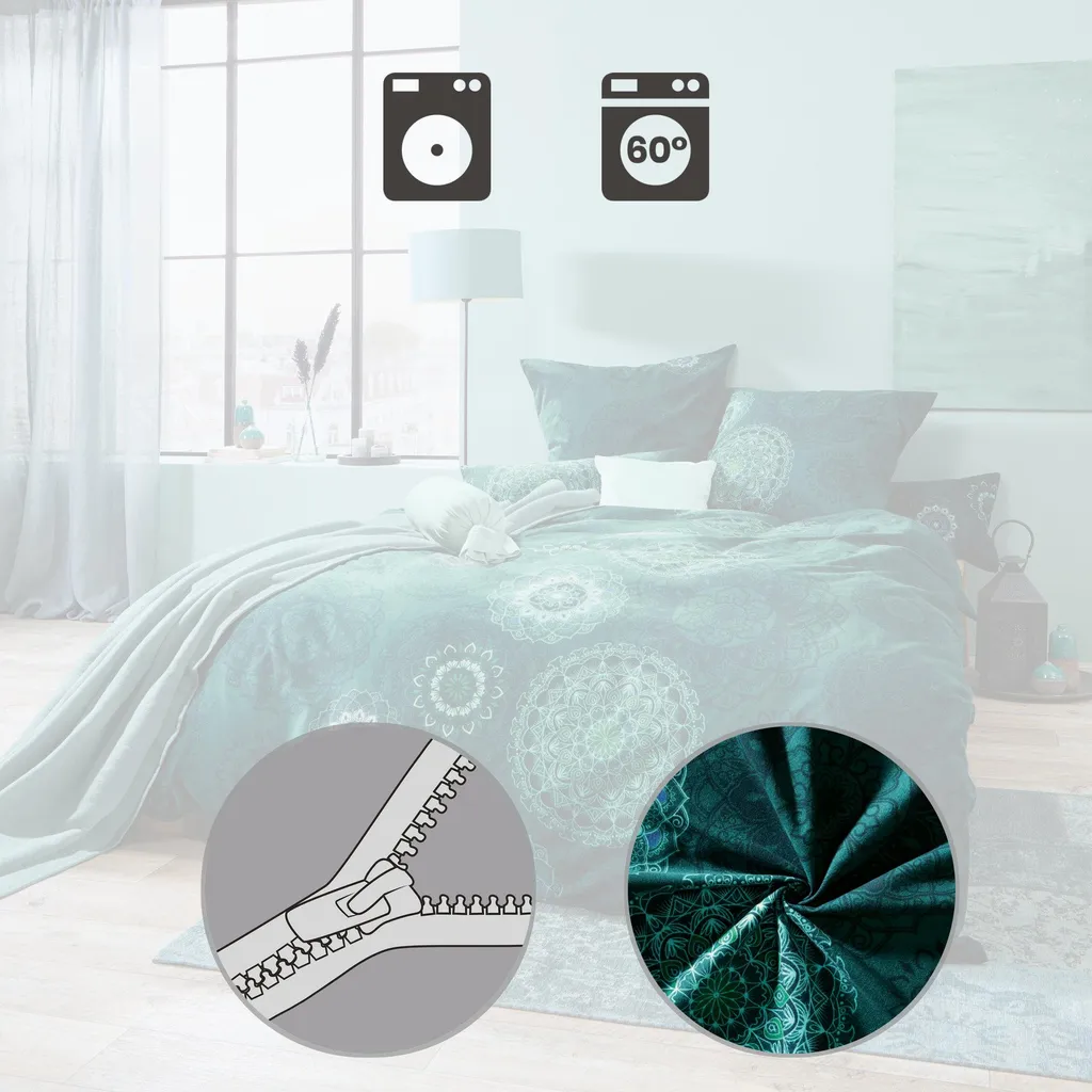 Erwin Müller Фланелевое постельное белье премиум-класса. Изысканные мандалы в гармоничной цветовой гамме обогатят вашу атмосферу и притянут взгляд. Они располагают к мечтам и отдыху. С двусторонней наволочкой. Наслаждайтесь нежным, бархатистым постельным бельем из тонкой пряжи в прохладные месяцы. Оно согревает, регулирует температуру и дышит. Легко надевать благодаря экономящей время молнии.