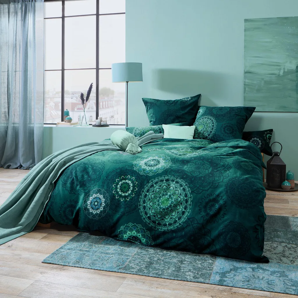 Erwin Müller Фланелевое постельное белье премиум-класса. Изысканные мандалы в гармоничной цветовой гамме обогатят вашу атмосферу и притянут взгляд. Они располагают к мечтам и отдыху. С двусторонней наволочкой. Наслаждайтесь нежным, бархатистым постельным бельем из тонкой пряжи в прохладные месяцы. Оно согревает, регулирует температуру и дышит. Легко надевать благодаря экономящей время молнии.