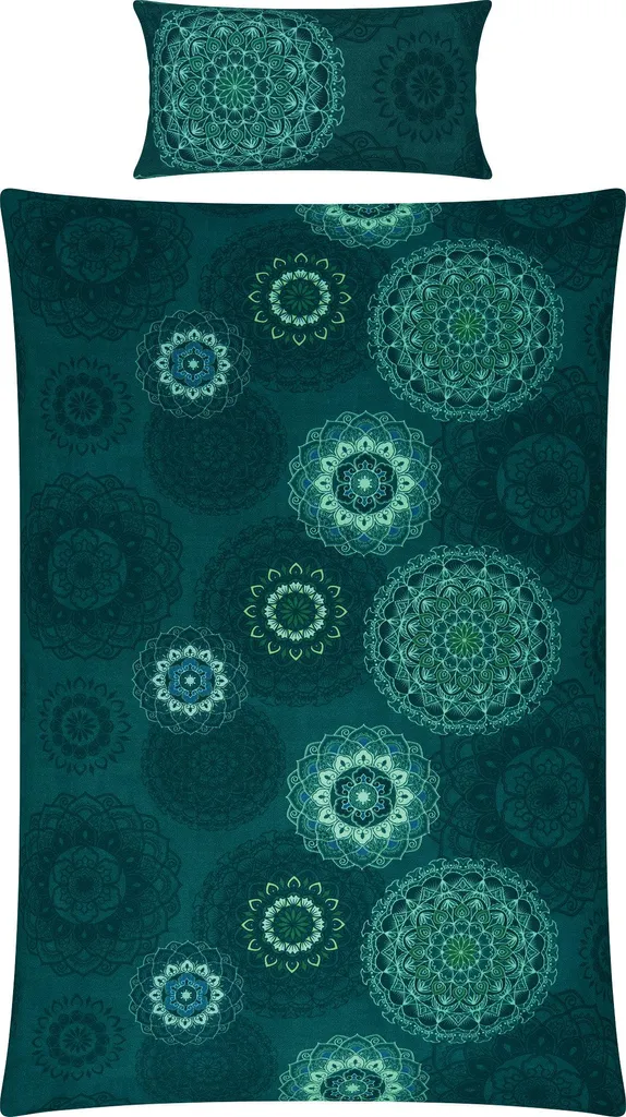 Erwin Müller Фланелевое постельное белье премиум-класса. Изысканные мандалы в гармоничной цветовой гамме обогатят вашу атмосферу и притянут взгляд. Они располагают к мечтам и отдыху. С двусторонней наволочкой. Наслаждайтесь нежным, бархатистым постельным бельем из тонкой пряжи в прохладные месяцы. Оно согревает, регулирует температуру и дышит. Легко надевать благодаря экономящей время молнии.