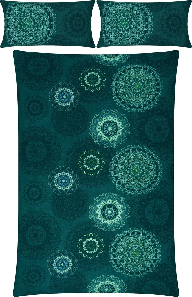 Erwin Müller Фланелевое постельное белье премиум-класса. Изысканные мандалы в гармоничной цветовой гамме обогатят вашу атмосферу и притянут взгляд. Они располагают к мечтам и отдыху. С двусторонней наволочкой. Наслаждайтесь нежным, бархатистым постельным бельем из тонкой пряжи в прохладные месяцы. Оно согревает, регулирует температуру и дышит. Легко надевать благодаря экономящей время молнии.