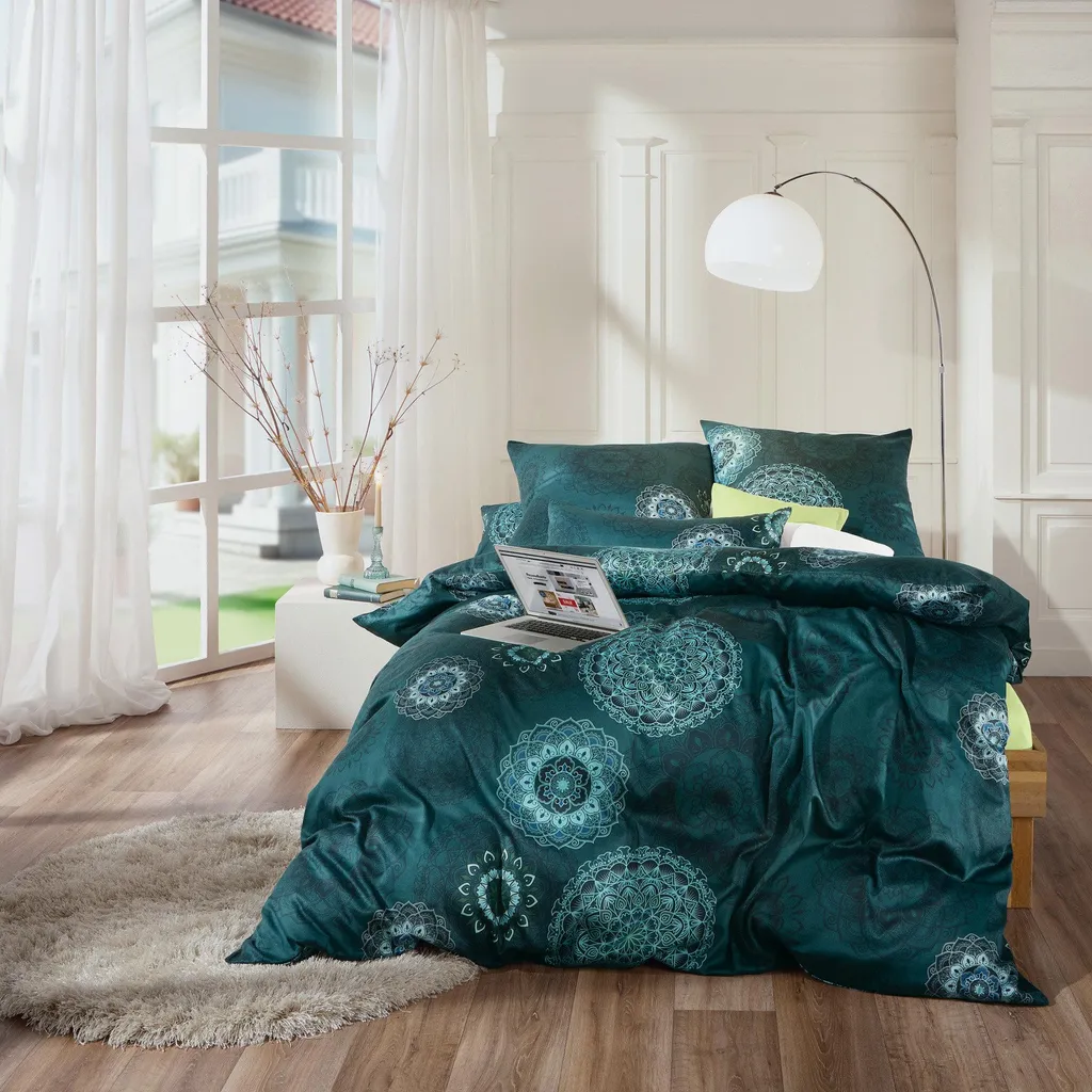 Постельное белье петроль 1x 200x200 см + 2x 80x80 см Erwin Müller
