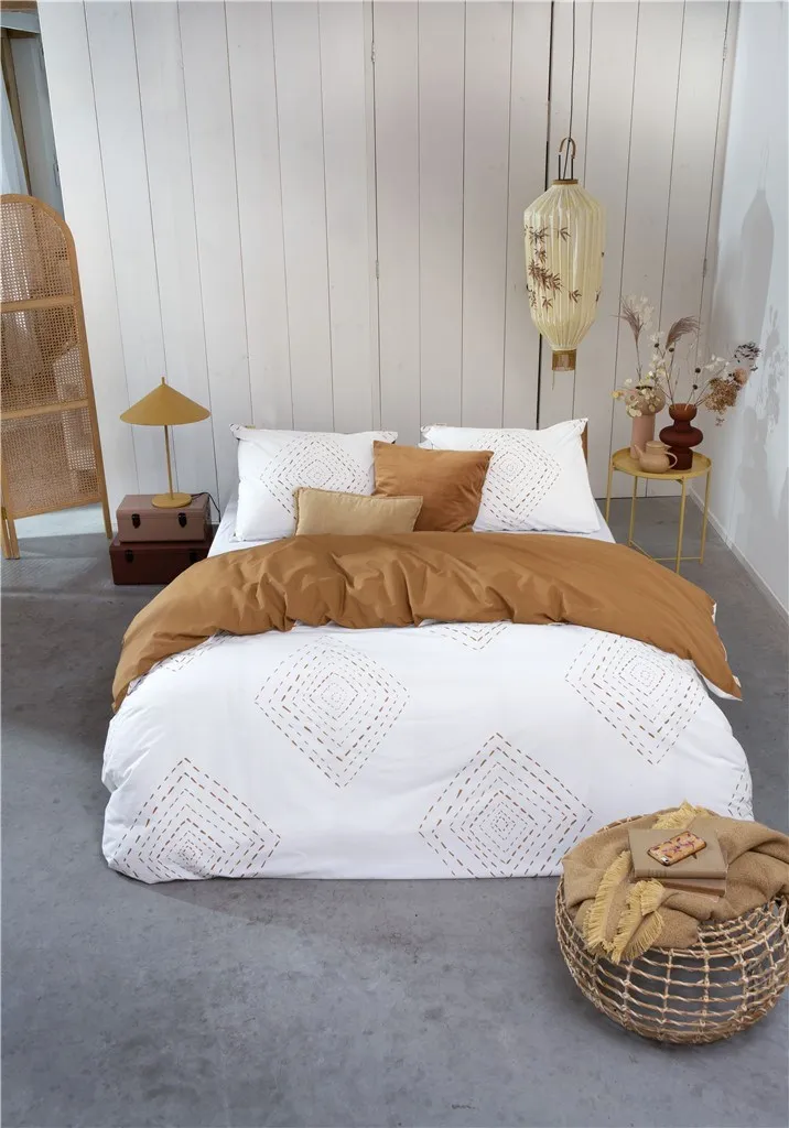 Двустороннее постельное белье Boho Stitches с одной стороны украшено клетчатым узором в бохо-стиле, идеально подходящим для темы Бабье лето. Обратная сторона однотонная, дополняет клетчатый узор, создавая успокаивающий эффект. Постельное белье изготовлено из 100% хлопка. -Материал: 100% хлопок, мягкая на ощупь, 1-местный, 2-местный, 2-местный, 2-местный, 3-местный, 3-местный, 20-сантиметровый, с вертикальным подолом. DE Die Einzel- (135 и 155 см) und Doppelstärken-Größen-Gleiche-Breite-Gießen.
