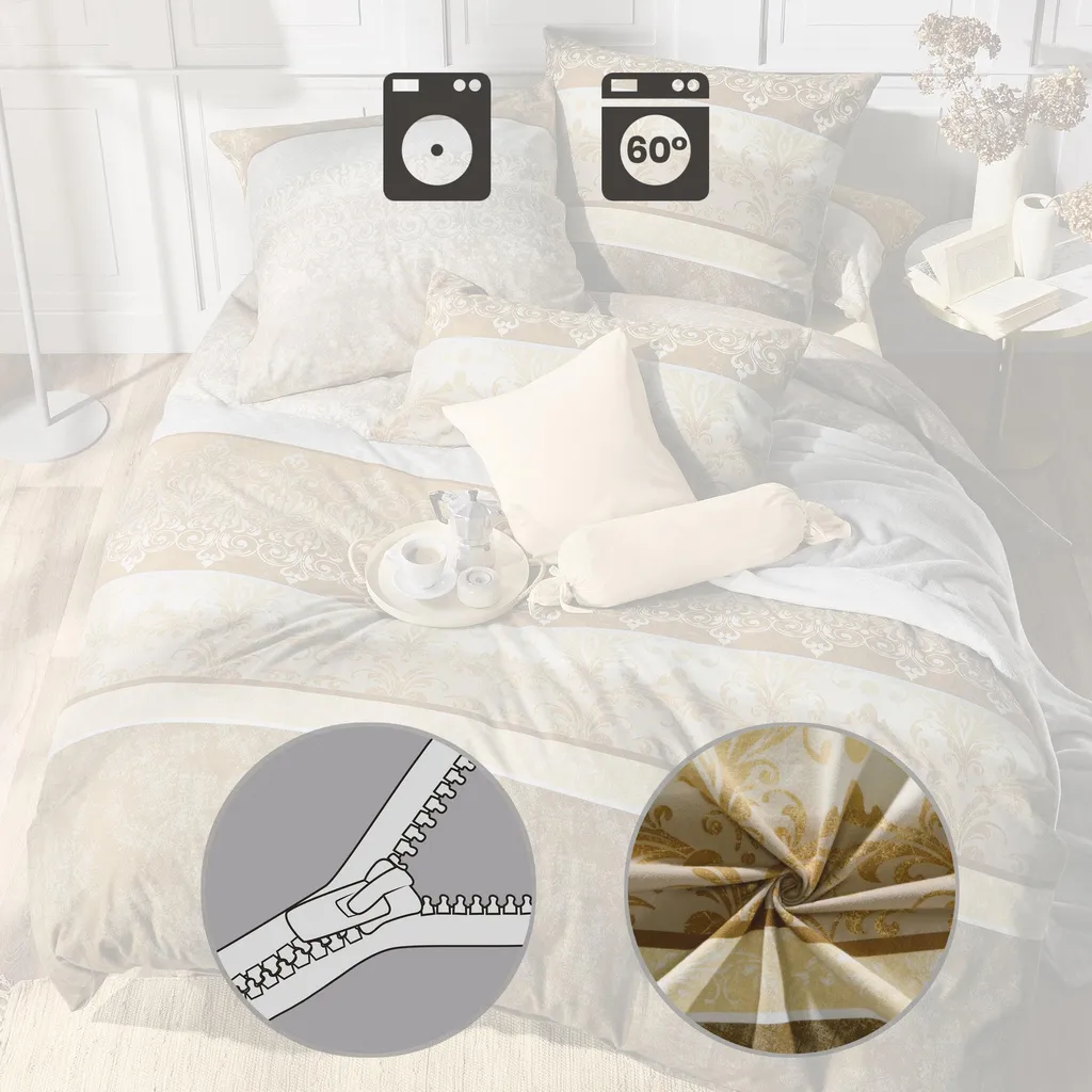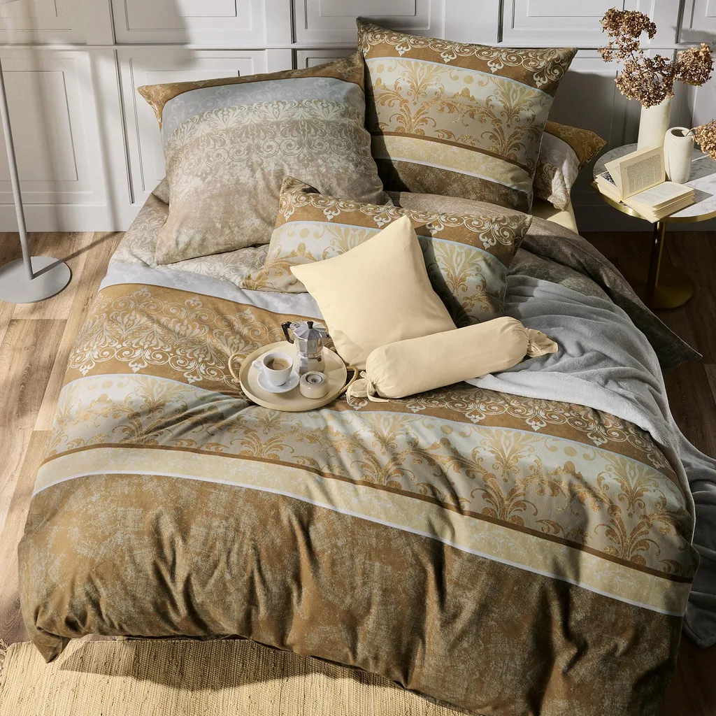 Erwin Müller Постельное белье из высококачественной фланели. Сочетание узоров, полосок, гармоничных цветовых сочетаний и двусторонних наволочек создает современную композицию. Это искусно выделит вашу кровать и придаст вашей спальне стильную атмосферу. Наслаждайтесь уютом, бархатистой мягкостью тонкой пряжи в прохладные месяцы. Оно согревает, регулирует температуру и дышит. Легко надевать благодаря экономящей время молнии.