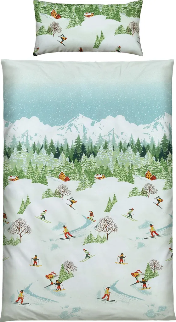 Erwin Müller Премиальное фланелевое постельное белье. Лыжники скользят по заснеженным горным склонам, поэтому это постельное белье - их любимый предмет в холодное время года. В комплект входит двусторонняя наволочка. Мягкая, мягкая ткань из тонкой пряжи с начесом - настоящее удовольствие. Она невероятно комфортна и окутывает теплом и уютом в холодные зимние месяцы. Эта высококачественная ткань не только дышащая и приятная на ощупь, но и терморегулирующая, и за ней легко ухаживать. Легко надевать благодаря практичной молнии.