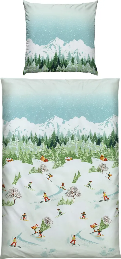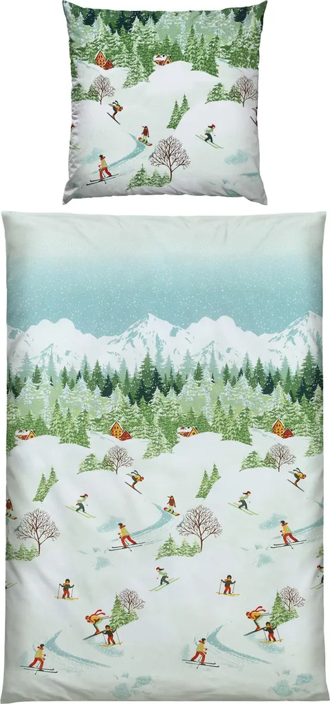 Erwin Müller Премиальное фланелевое постельное белье. Лыжники скользят по заснеженным горным склонам, поэтому это постельное белье - их любимый предмет в холодное время года. В комплект входит двусторонняя наволочка. Мягкая, мягкая ткань из тонкой пряжи с начесом - настоящее удовольствие. Она невероятно комфортна и окутывает теплом и уютом в холодные зимние месяцы. Эта высококачественная ткань не только дышащая и приятная на ощупь, но и терморегулирующая, и за ней легко ухаживать. Легко надевать благодаря практичной молнии.