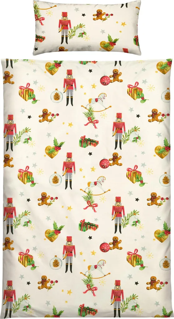 Erwin Müller Премиальное фланелевое постельное белье. Детализированные мотивы, такие как щелкунчики, пряничные человечки и подарки, привнесут в вашу спальню волшебство Рождества. Мягкая, гладкая ткань из тонких гребенных нитей - настоящее удовольствие. Она невероятно комфортна и окутает вас теплом и уютом в холодные зимние месяцы. Эта высококачественная ткань не только дышащая и приятная на ощупь, но и терморегулирующая, и за ней легко ухаживать. Легко надевать благодаря практичной молнии.