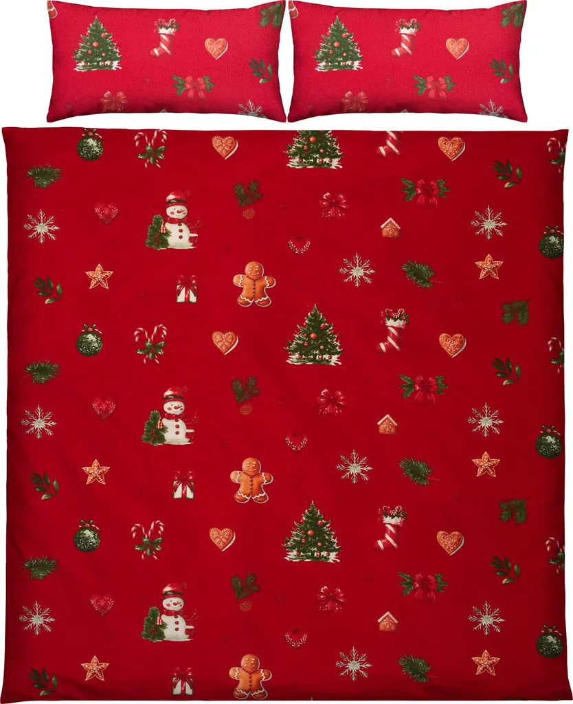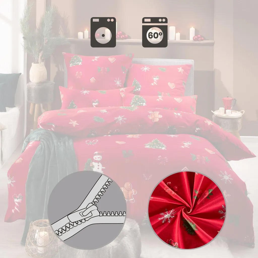 Erwin Müller Постельное белье из фланели премиум-класса. Рождественские мотивы, такие как пряничные человечки, елки, снеговики и другие, создадут уютную атмосферу в вашей спальне. Мягкая начесная поверхность ткани дарит ощущение бархатистости, а ее качество обеспечивает приятное тепло и исключительный комфорт. Вам понравится уютно укутываться в эту дышащую и терморегулирующую ткань, ведь она приятна для кожи. Быстро и легко надевается благодаря практичной молнии.