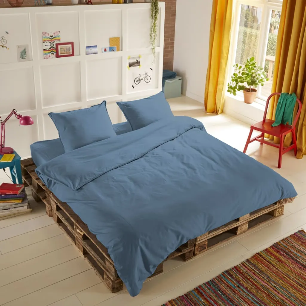 Этот однотонный комплект постельного белья имеет ледяной голубой цвет с обеих сторон. Кроме того, защипный клапан гарантирует, что одеяло останется на месте в течение ночи.