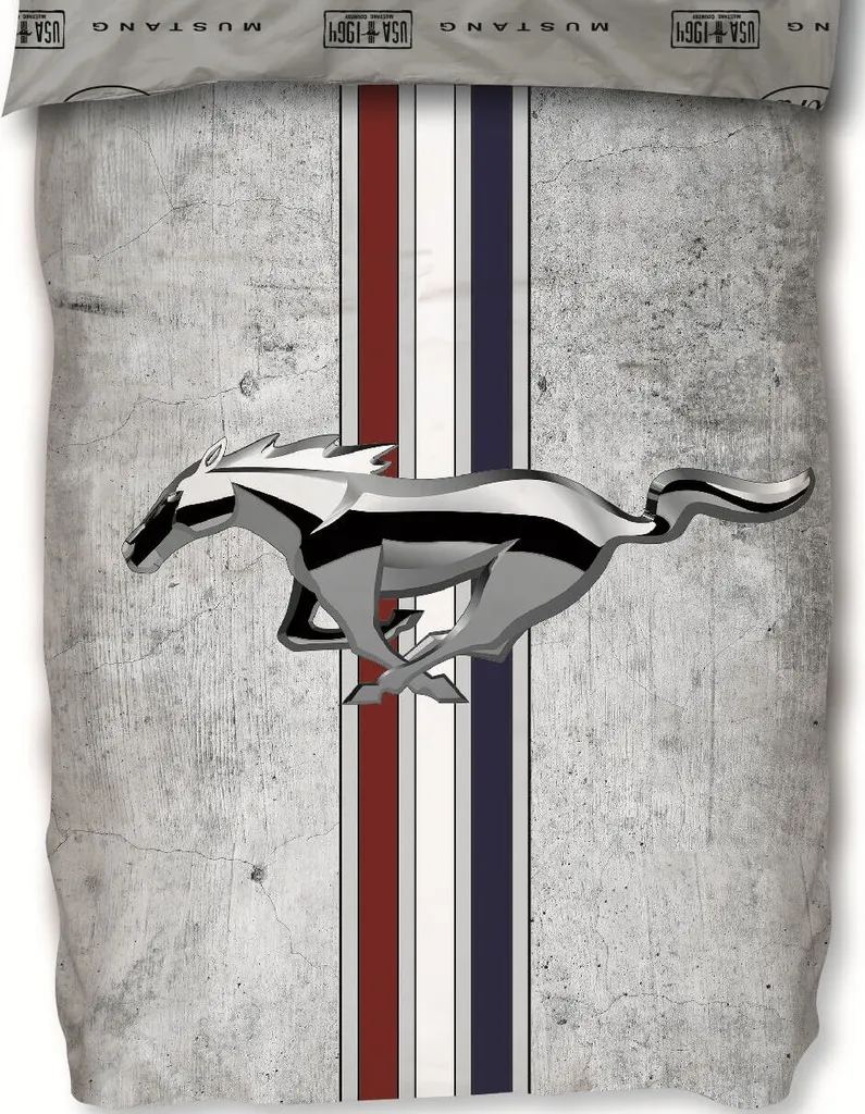 КОМПЛЕКТ ПОСТАВКИ - Комплект постельного белья из 2 частей с детальным дизайном Ford Mustang, состоящий из пододеяльника (135x200 см) и наволочки (80x80 см) для односпальной кровати.