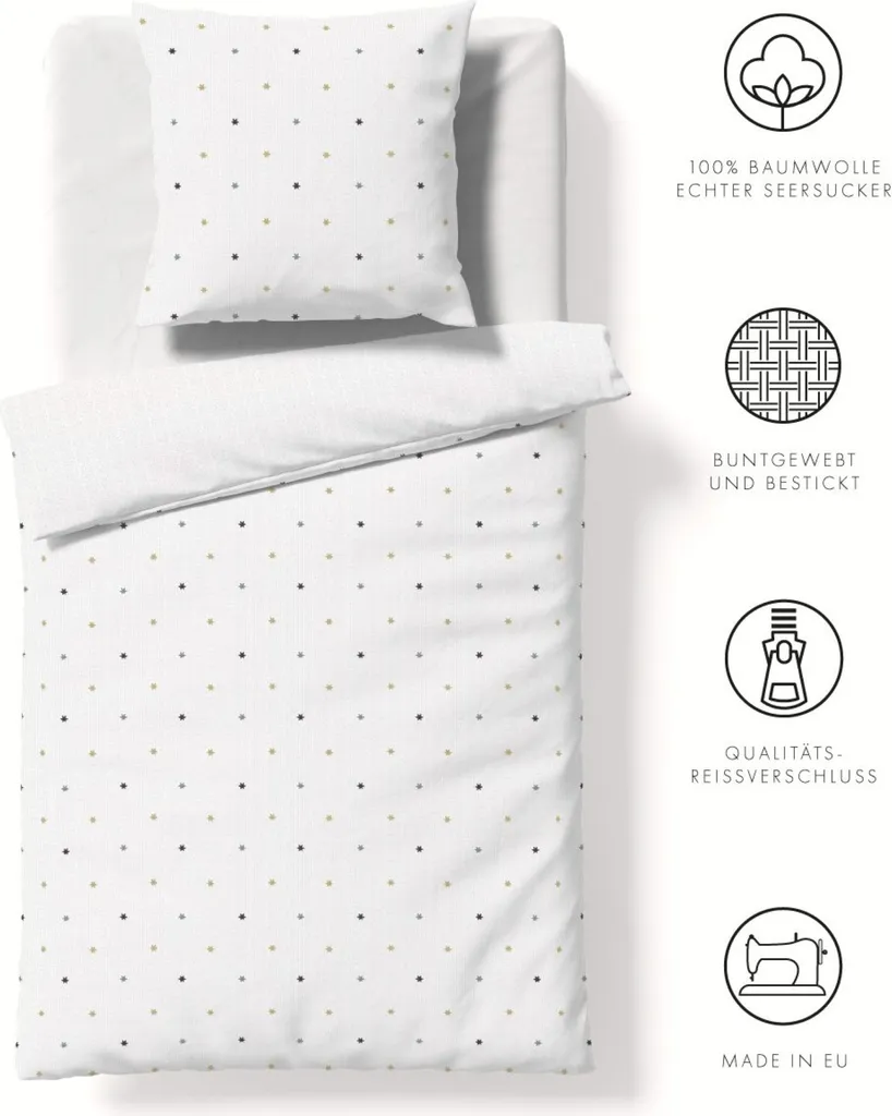Жатая ткань из чистого хлопка не прилегает напрямую к коже, что придает ей особую легкость. Постельное белье из сирсакера Fleuresse с жатыми полосками идеально подходит в качестве летнего постельного белья.