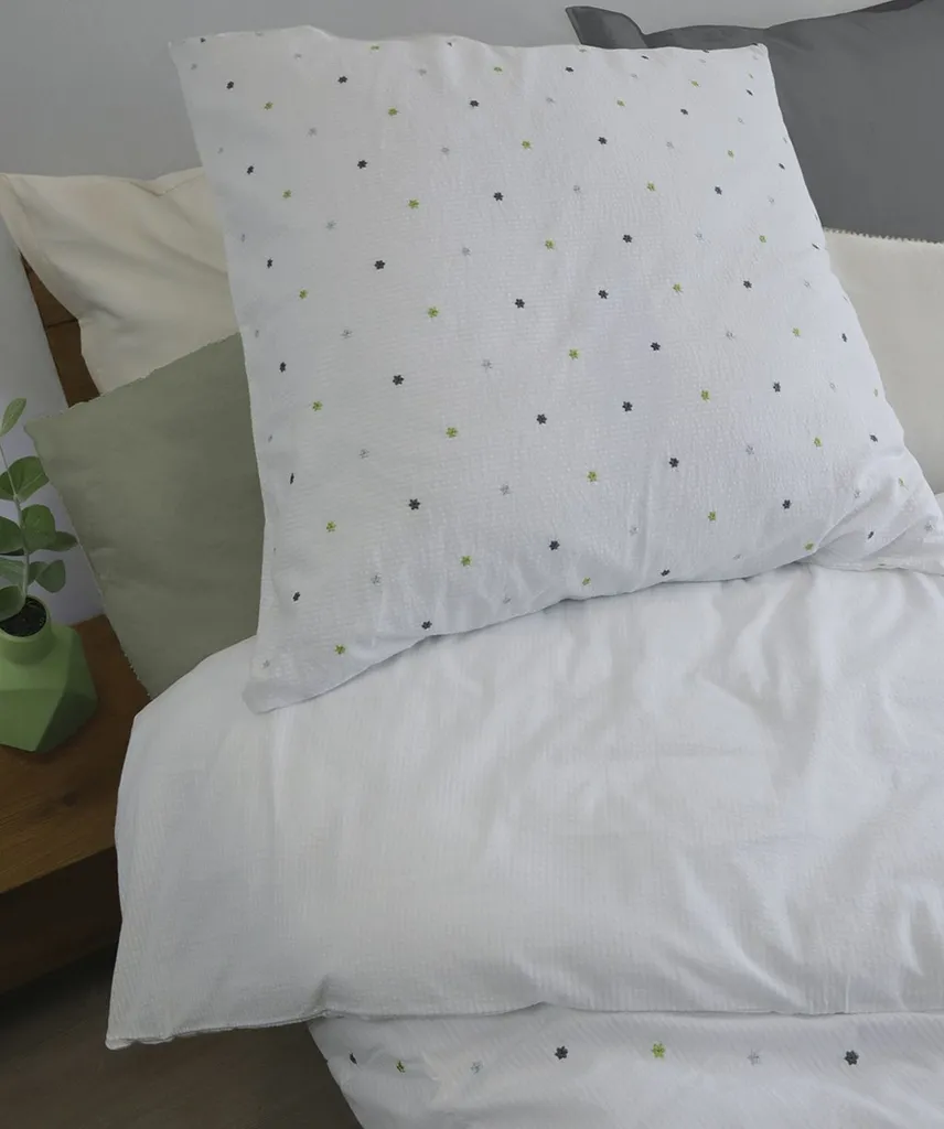 Мятое постельное белье Rio от Fleuresse быстро и легко надевается благодаря молнии.