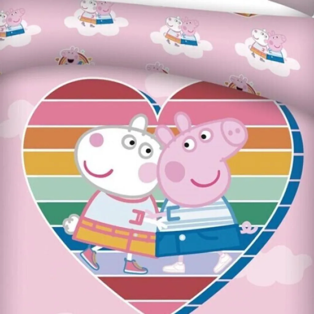 Обожаете Свинку Пеппу? Тогда этот пододеяльник вам идеально подходит! Пеппа очень большая как на пододеяльнике, внутри сердца, так и на наволочке. Таким образом, отход ко сну станет наградой, а не наказанием. Спите спокойно!
