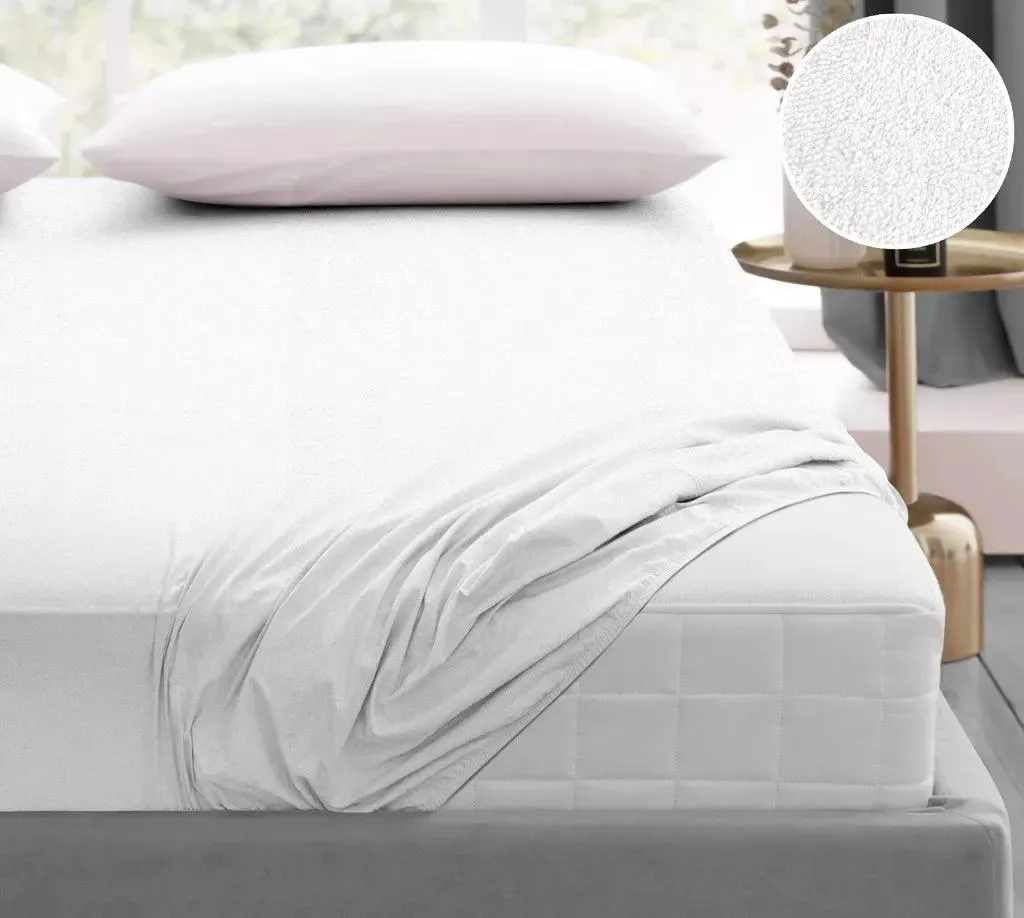 Простыня на резинке, махровая, плотная, 200х220 см, белая Greno