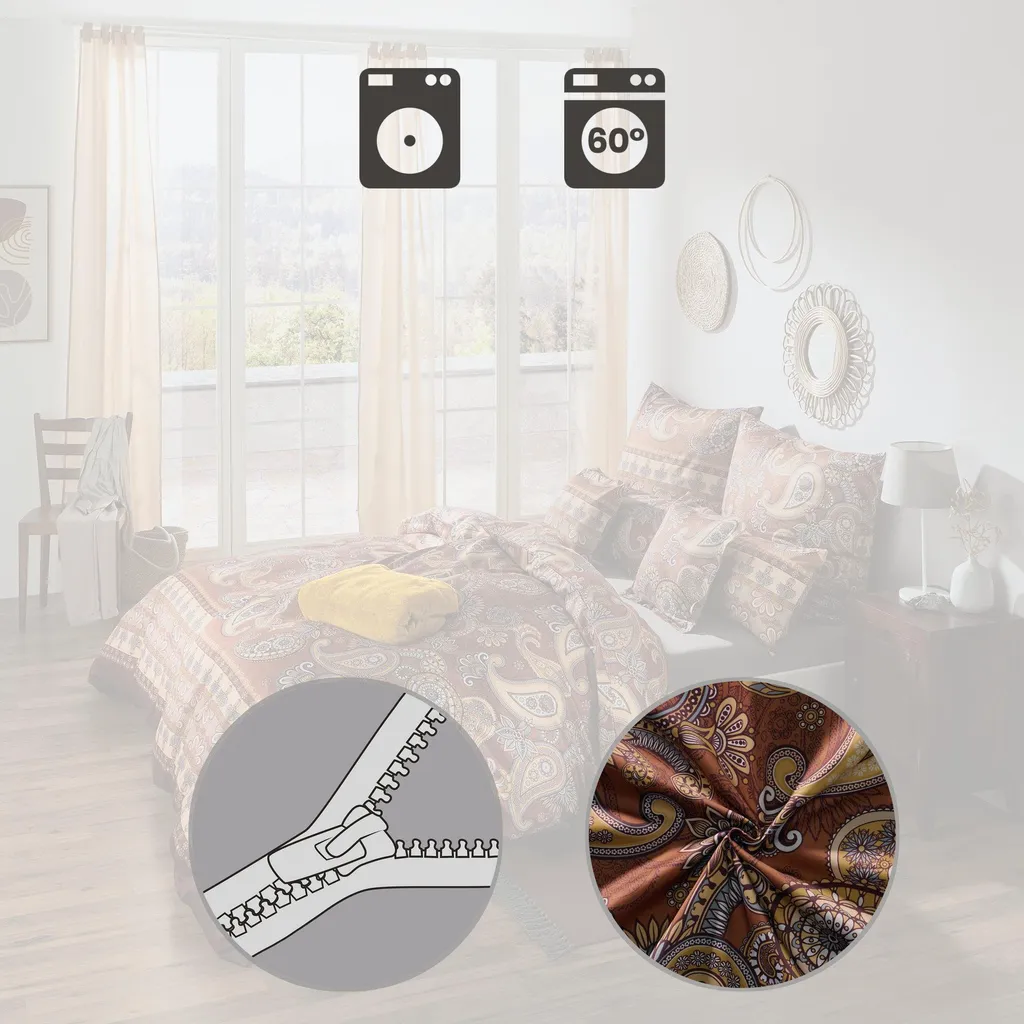 Постельное белье из сатина Erwin Müller Mako. Великолепный узор пейсли в гармоничных тонах создает приятную, уютную атмосферу. В комплект входит двусторонняя наволочка. Плотная ткань невероятно мягкая на ощупь. Высокое качество подтверждается элегантным шелковистым блеском. Терморегулирующий, дышащий материал обеспечивает прекрасный микроклимат во время сна. Изготовлено из тончайшей гребеной и мерсеризованной пряжи. Практичная застежка-молния обеспечивает легкую смену чехла.