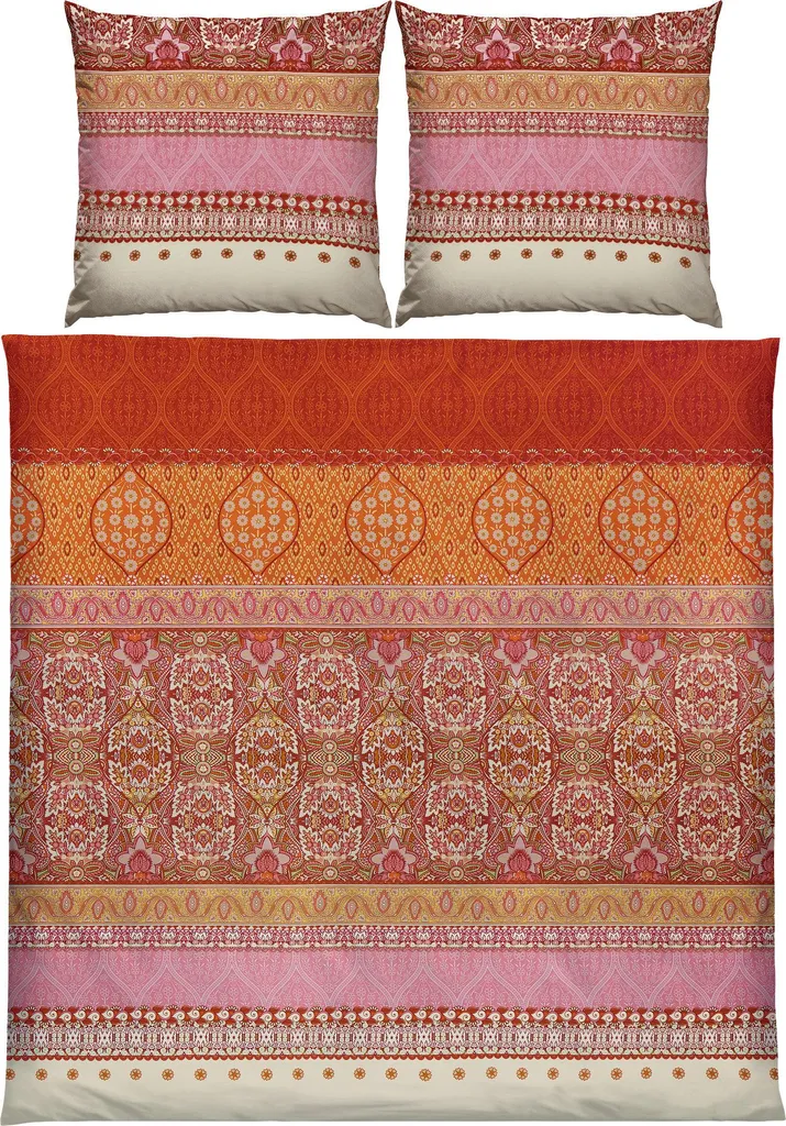 Постельное белье Erwin Müller Mako из сатина. Сочетание великолепных орнаментов, горизонтальных полос и гармоничной игры цветов перенесет вас в спальню, словно в сказку Тысяча и одна ночь. Двусторонняя наволочка. Почувствуйте эту тонкую, бархатистую ткань. Она соблазняет своим элегантным блеском и окутывает вас сказочным сном. Эта ткань терморегулирует, дышащая и мягкая на ощупь.