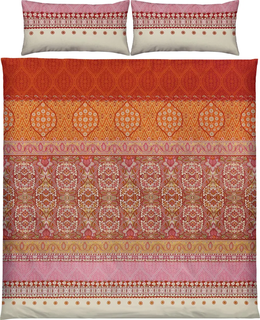 Постельное белье Erwin Müller Mako из сатина. Сочетание великолепных орнаментов, горизонтальных полос и гармоничной игры цветов перенесет вас в спальню, словно в сказку Тысяча и одна ночь. Двусторонняя наволочка. Почувствуйте эту тонкую, бархатистую ткань. Она соблазняет своим элегантным блеском и окутывает вас сказочным сном. Эта ткань терморегулирует, дышащая и мягкая на ощупь.