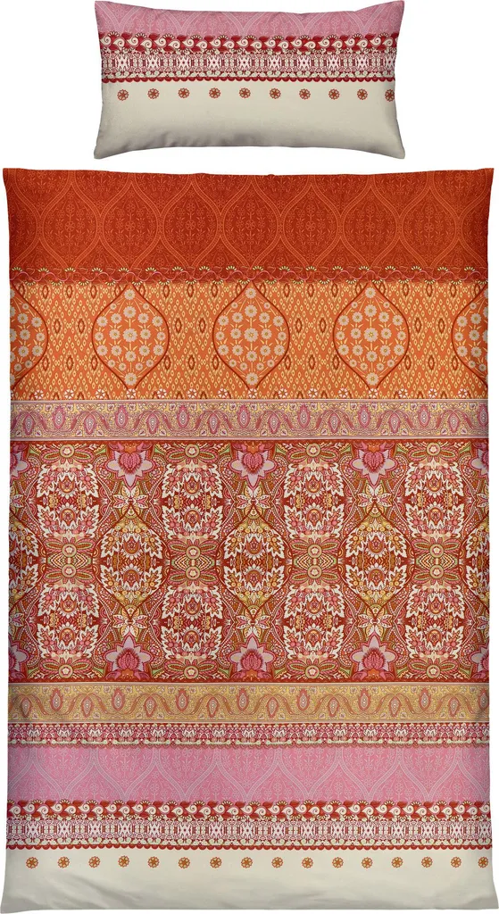 Постельное белье Erwin Müller Mako из сатина. Сочетание великолепных орнаментов, горизонтальных полос и гармоничной игры цветов перенесет вас в спальню, словно в сказку Тысяча и одна ночь. Двусторонняя наволочка. Почувствуйте эту тонкую, бархатистую ткань. Она соблазняет своим элегантным блеском и окутывает вас сказочным сном. Эта ткань терморегулирует, дышащая и мягкая на ощупь.