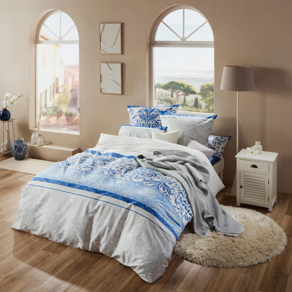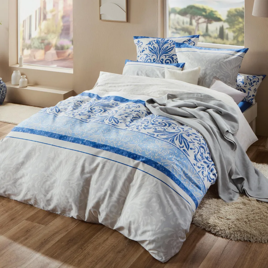 Постельное белье из сатина Erwin Müller Mako. Художественные орнаменты, вдохновленные восточной плиткой, придадут вашей спальне очаровательный и уютный вид. В комплекте двусторонняя наволочка. Расчесанные мерсеризованные нити создают шелковистую, бархатистую ткань, которая поражает своей элегантностью, исключительным комфортом и характерным легким блеском. Эта высококачественная ткань не только дышащая и мягкая на ощупь, но и благодаря своим термо- и влагорегулирующим свойствам обеспечивает невероятно комфортный сон. Быстро и легко надевается благодаря практичной молнии.