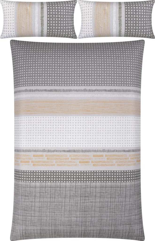 Постельное белье из сирсакера Erwin Müller. Графичный полосатый рисунок, гармоничные цвета и двусторонняя наволочка наполнят ваш дом свежестью. Вас быстро поразит простота ухода: это простое постельное белье практически не мнется - просто постирайте, высушите и благодаря молнии мгновенно положите его обратно на кровать.