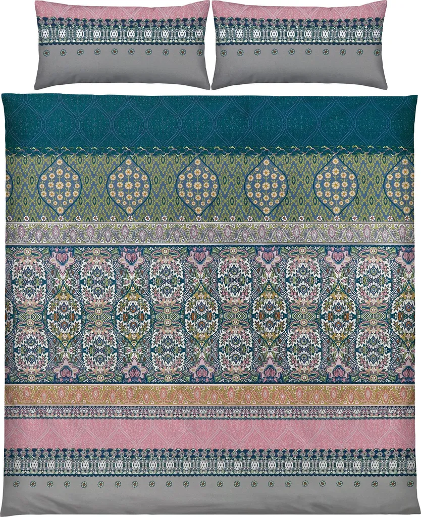 Постельное белье Erwin Müller Mako из сатина. Сочетание великолепных орнаментов, горизонтальных полос и гармоничной игры цветов перенесет вас в спальню, словно в сказку Тысяча и одна ночь. Двусторонняя наволочка. Почувствуйте эту тонкую, бархатистую ткань. Она соблазняет своим элегантным блеском и окутывает вас сказочным сном. Эта ткань терморегулирует, дышащая и мягкая на ощупь.