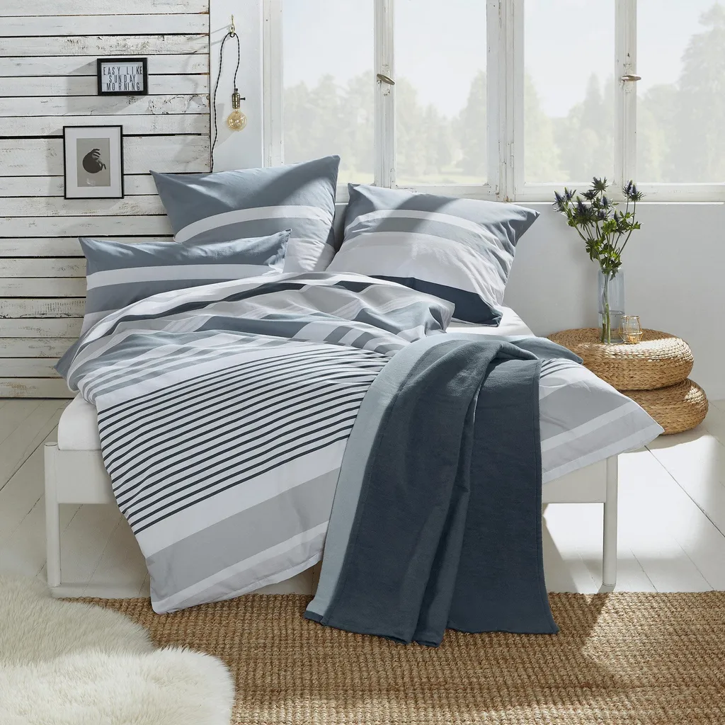 REDBEST Постельное белье из перкаля. Современный полосатый дизайн в гармоничных тонах легко впишется в вашу спальню, создавая уютную атмосферу. Гладкая, приятная на ощупь ткань обеспечивает превосходный комфорт во время сна. Она удивительно мягкая, эластичная, прочная и дышащая. Легко надевается благодаря молнии.