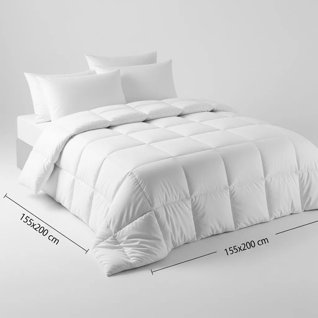 Ткань из тонкой и плотно Тканые волокна не пропускают пыль, мелкие загрязнения и даже клещей. Использование синтетических волокон предотвращает возникновение раздражения и аллергии. Повышенная износостойкость одеяла и возможность стирки при высоких температурах обеспечивают эффективную гигиену сна. ПАРАМЕТРЫ: Тип одеяла: Летнее, очень легкое и тонкое Размер одеяла: 135x200 см Ткань: 100% полиэстер (мягкая, легкая микрофибра) Наполнитель: 100% пушистое полиэфирное волокно, трубчатое, спиральное, силиконизированное (HCS) Цвет: белый